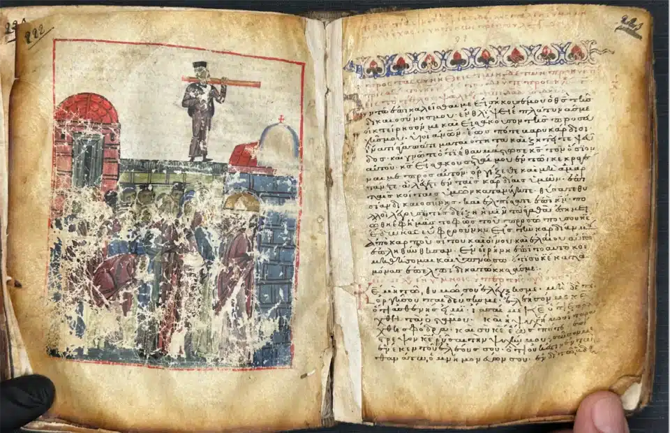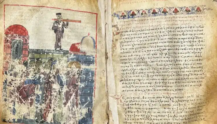 Λέσβος: Αποκαλύφθηκαν σπάνια βυζαντινά χειρόγραφα της μονής Λειμώνος, μινιατούρες με μελάνι και χρυσό