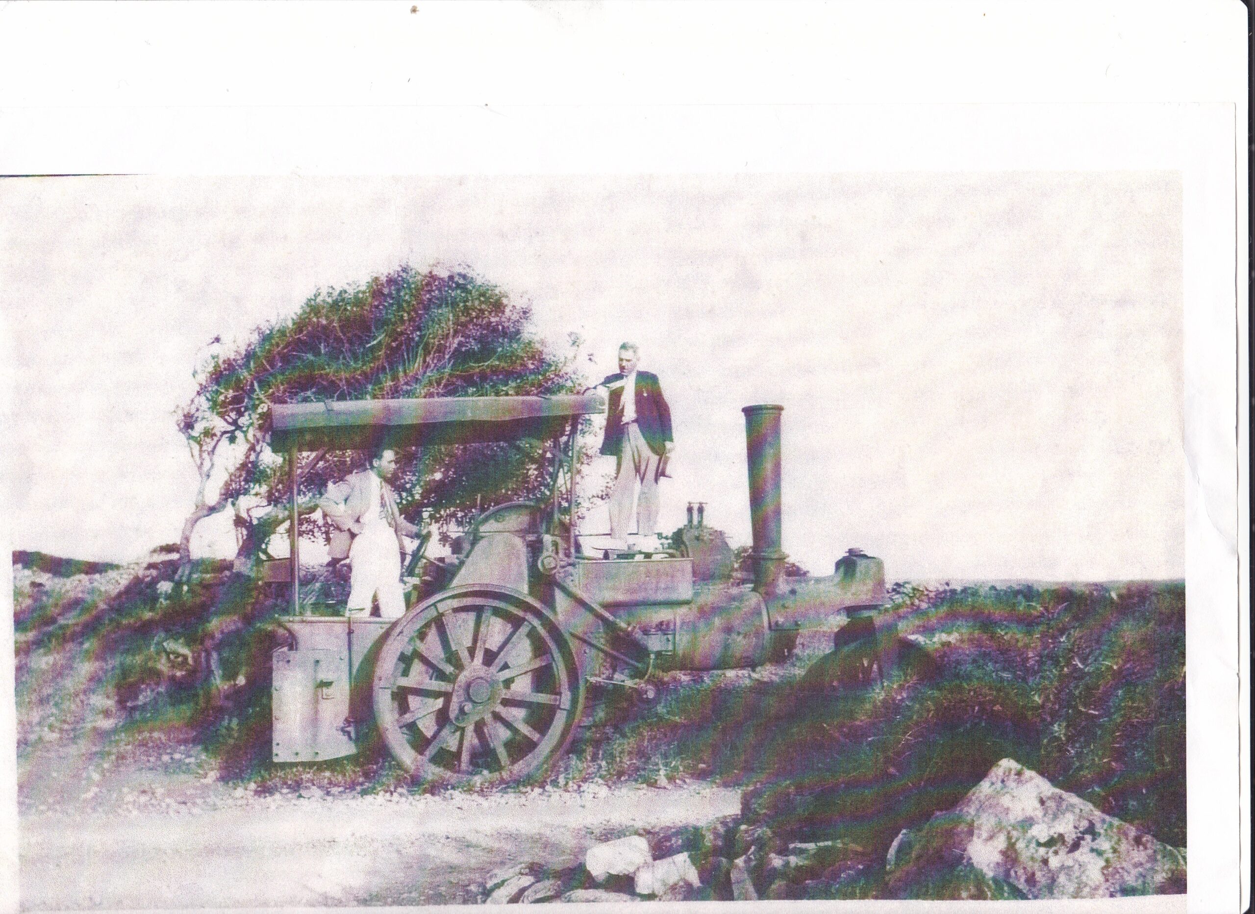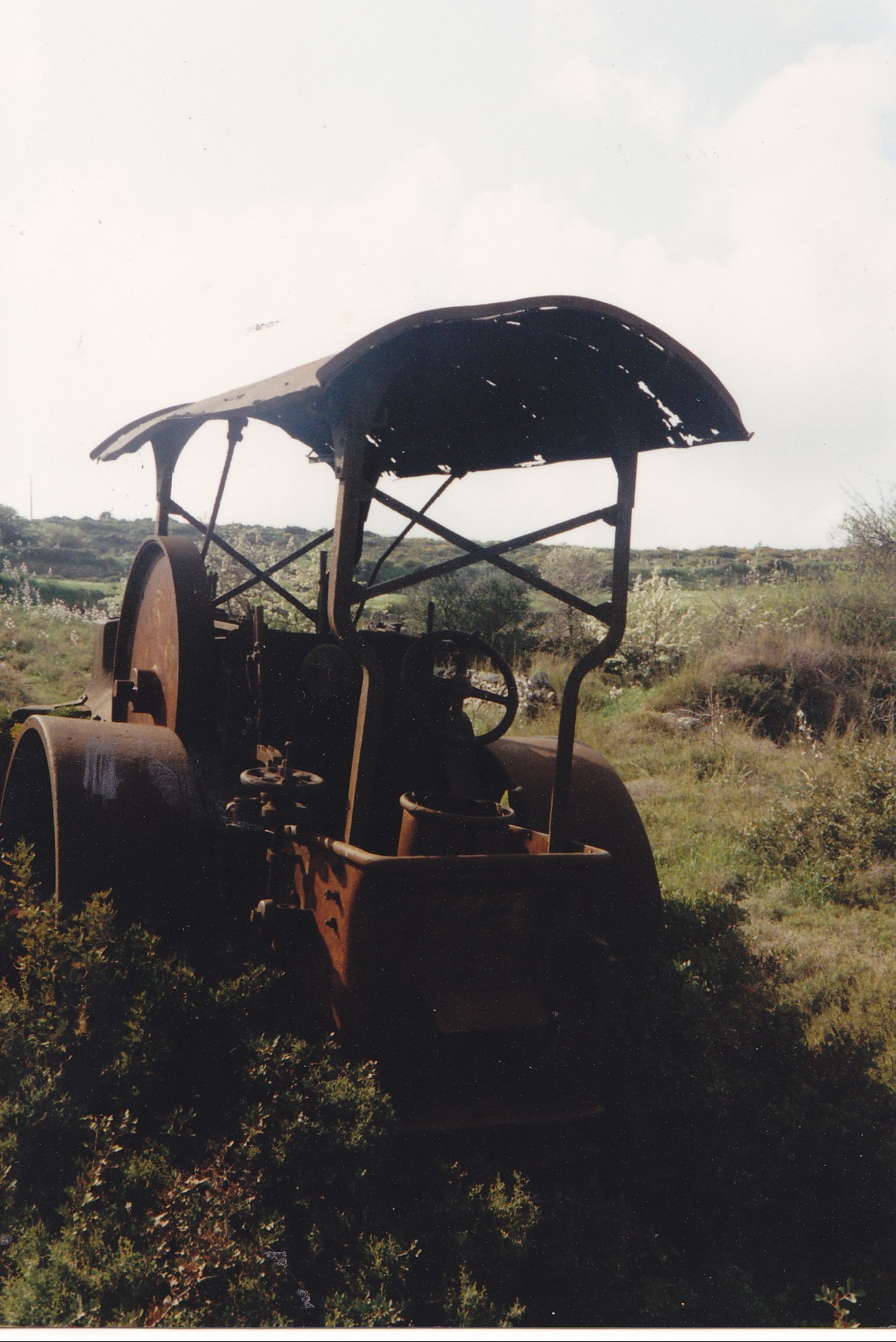 Αυτό το μηχάνημα, λοιπόν, έφθασε στο νησί τη δεκαετία του 1950 που άρχισε η ασφαλτόστρωση του κεντρικού δρόμου περίπου την ίδια εποχή που η πρωτοβουλία των ομογενών είχε ξεκινήσει την ανέγερση του Νοσοκομείου. Παραλείπουμε να επαναλάβουμε όλα όσα έχουμε γράψει κατά καιρούς τότε και επανερχόμαστε στο γεγονός ότι το μηχάνημα αυτό, σπάνιο στην Ελλάδα, ήταν μάρκας MAFEI & JACOB και είχε εγκαταλειφθεί στη θέση Περιβολάκι, λίγο έξω από τη Χώρα μετά από τις συνεχείς βλάβες του. Μην ξεχνάμε ότι έφθασε εδώ μεταχειρισμένο με εκατοντάδες ώρες στα έργα. Από το Περιβολάκι, που εξ αιτίας του μηχανήματος αυτού έλαβε το όνομα Οδοστρωτήρας ως ένα καινοφανές τοπωνύμιο, που κατέληξε σε τοπόσημο, βρέθηκε σε ένα χωράφι στον Άγιο Ηλία εκεί που φωτογραφήθηκε για τα «Κ» το 1991.