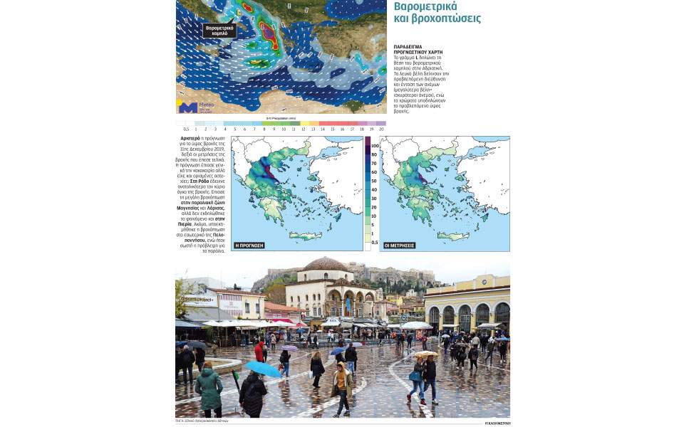 Παρ’ όλα αυτά, τα αποτελέσματα δεν είναι τέλεια. «Γιατί γίνονται λάθη στις προγνώσεις; Κατ’ αρχάς, γιατί δεν έχουμε παντού μετρήσεις. Σήμερα αξιοποιούμε μετρήσεις από σταθμούς εδάφους, μετεωρολογικά μπαλόνια, πλοία, αεροσκάφη και δορυφόρους, αλλά και πάλι υπάρχουν κενά, κυρίως στη θάλασσα, αλλά και σε ερημικές εκτάσεις, στους πόλους κ.λπ. Δεύτερον, η γνώση μας για το πώς λειτουργεί η φύση δεν είναι ακόμα πλήρης, ειδικά στα νέφη», συμπληρώνει στην «Κ» ο κ. Κώστας Λαγουβάρδος, διευθυντής Ερευνών στο Εθνικό Αστεροσκοπείο Αθηνών και υπεύθυνος της ιστοσελίδας meteo.gr.