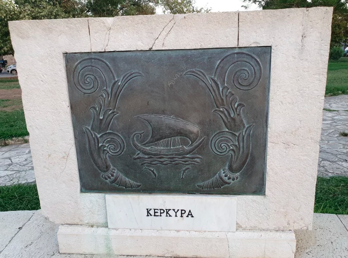 Έτσι, στην πλάκα της Κέρκυρας αναπαρίσταται η «Απήδαλος ναυς», δηλαδή το πλοίο χωρίς πηδάλιο, το αρχαίο έμβλημα της πόλης της Κέρκυρας που συμβολίζει της ναυτοσύνη των Φαιάκων.