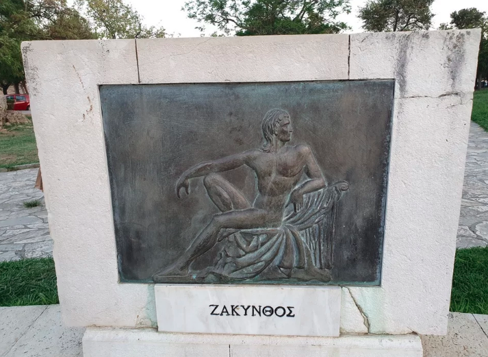 Στην πλάκα της Ζακύνθου φέρεται να αναπαρίσταται ο ιδρυτής του νησιού ο Ζάκυνθος, γιός του Δαρδάνου, βασιλιά της Τροίας, που έφτασε στο νησί και ίδρυσε την ακρόπολή του.