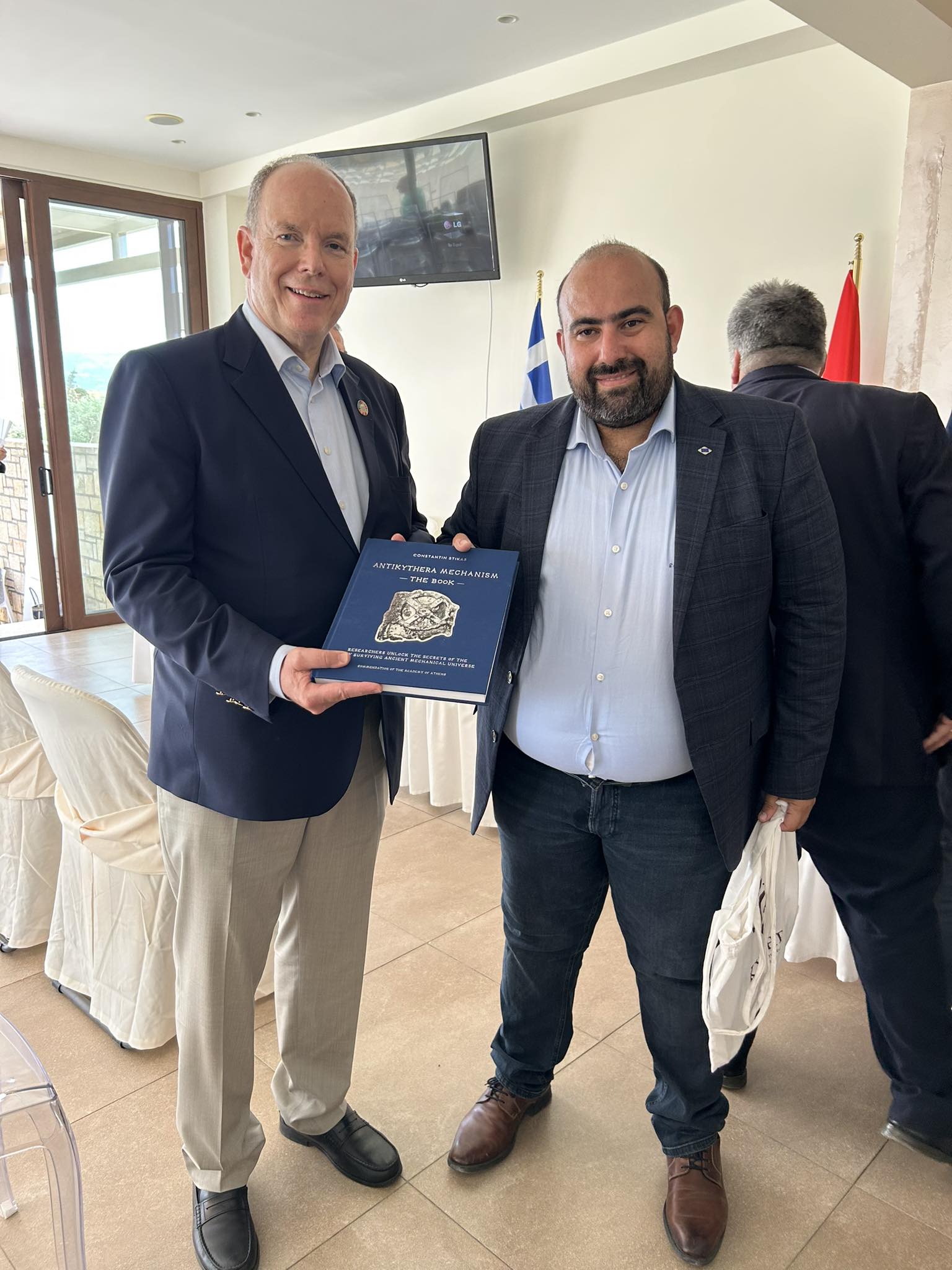 Στο τέλος προσέφερα στην ΑΓΥ, τον Πρίγκιπα Αλβέρτο ΙΙ, το βιβλίο του Κωστή Στήκα για το Μηχανισμό των Αντικυθήρων και τον προσκάλεσα να επισκεφθεί και τα Κύθηρα για να δει από κοντά τις σημαντικές δράσεις και τα έργα που προωθούμε με στόχο την βιώσιμη ανάπτυξη του νησιού μας (ΧΥΤΥ, αφαλατώσεις, αποχετευτικό κ.λπ.).