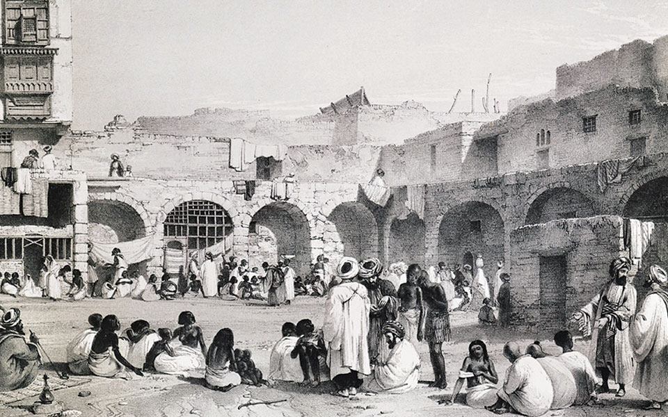 Tην εικόνα μπορεί να την έχεις ξαναδεί, χωρίς όμως να την πολυκοιτάξεις. Δείχνει, λέει η λεζάντα, το σκλαβοπάζαρο του Καΐρου στις αρχές του 19ου αιώνα. Εκεί οδηγήθηκαν από τον στρατό του Ιμπραήμ και πουλήθηκαν σαν δούλοι εκατοντάδες Ελληνες. Μεταξύ τους και η Καλλίτσα Ψαράκη, μετέπειτα σύζυγος του Σκωτσέζου αιγυπτιολόγου Robert Hay. Στο αρχείο του Hay βρέθηκε η αναπαράσταση του παζαριού.