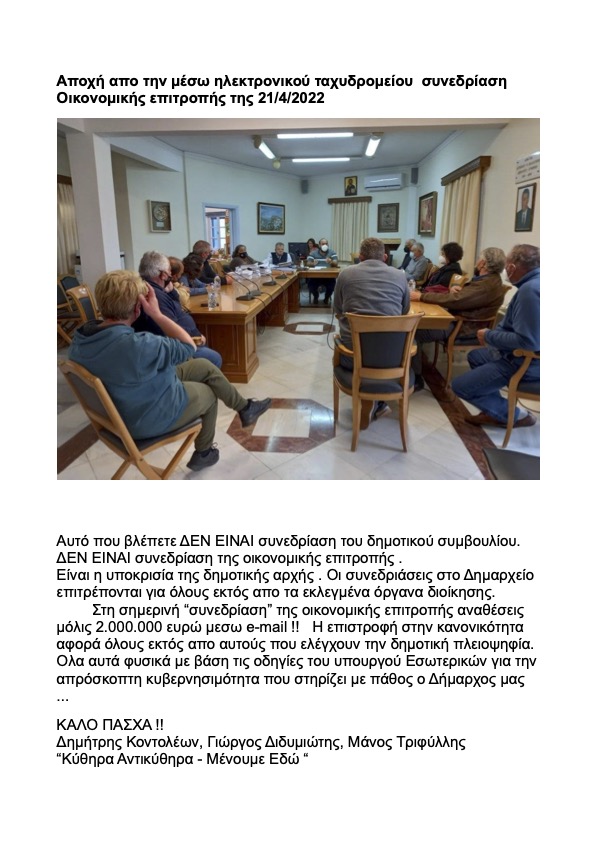 ΜΕΝΟΥΜΕ ΕΔΩ: Αποχή απο την μέσω ηλεκτρονικού ταχυδρομείου συνεδρίαση Οικονομικής επιτροπής της 21/4/2022