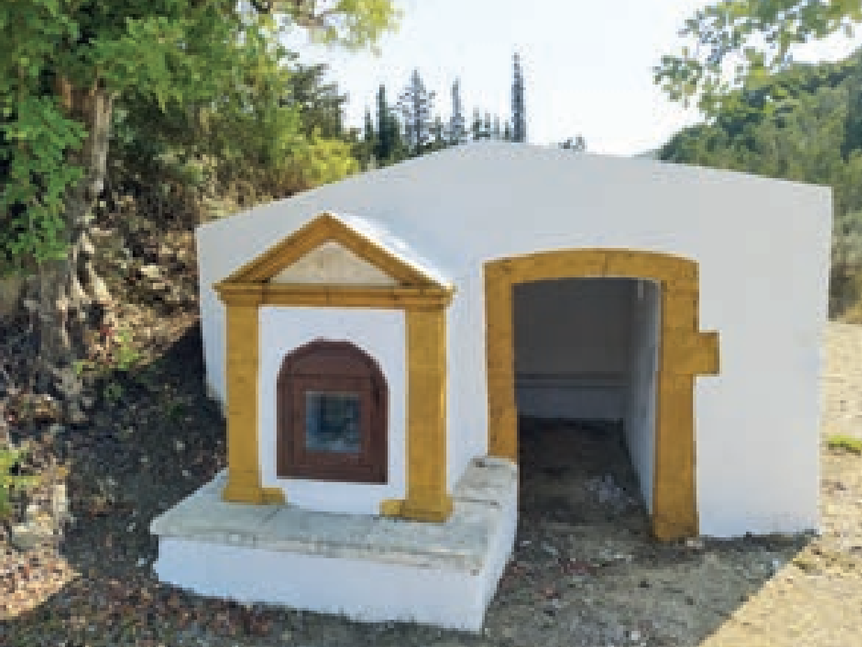 Το περίπτερο της φωτογραφίας είναι από τα παλαιότερα σωζόμενα στα Κύθηρα, πιθανότατα του 18ου αι., αφού στην επιγραφή αναφέρεται ανακαίνισή του το 1864, η οποία έγινε από την Παναγία Κακημέλισσα, στην οποία είναι αφιερωμένο το εικονοστάσι. Σύμφωνα με όσα μάθαμε οι φετινοί ευπρεπισμοί έγιναν από το Δήμο με πρωτοβουλία του αντιδημάρχου κ. Κομηνού (Σ.Σ. πολλοί, όταν θέλουν κάνουν δουλειά, αρκεί να προσέχουν λίγο μην «πετάξουν τον …αρμεγό»). Ελπίζουμε το έργο αυτό να συνεχιστεί και να αναδείξουν και το αντίστοιχο στο επόμενο γεφύρι, που ήταν συνοδό έργο της κεντρικής οδού, που έγινε επί αγγλοκρατίας και είναι το μόνο σωζόμενο. (Έχουμε γράψει και γι΄αυτό στο παρελθόν).