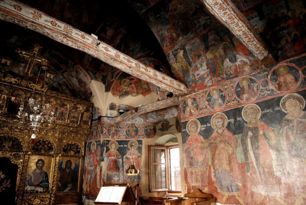 Προσομοίωση αυτής της θέας αντικρίζει ο περιηγητής που θα διαβεί το πορτόνι, πίσω από το Ιερό του Καθολικού, και θα κάνει μερικά βήματα μέχρι το θεαματικό μπαλκόνι στην άκρη του γκρεμού, στην αγκαλιά των απότομων πλαγιών των ψηλών βουνών. Μόλις πριν από λίγο είχε βρεθεί μέσα στη μαγεία και το ταξίδι που σε υποβάλλει ο βυζαντινός κόσμος ο οποίος είναι αριστοτεχνικά ιστορημένος στο κατάγραφο από τοιχογραφίες Καθολικό.