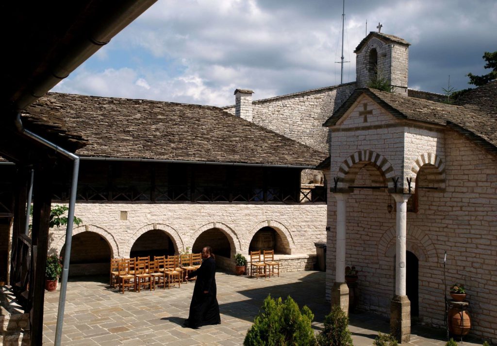Από εδώ οι πλαγιές απελευθερώνονται και τρέχουν, κατάφυτες, και σταματούν ξαφνικά στο χείλος της αβύσσου, ψηλά πάνω από τον Αραχθο. Οπως συμβαίνει και με το μοναστήρι, το πιο δημοφιλές προσκύνημα της Ηπείρου, που σταματά ένα βήμα πριν το χάος των βαθιών χαραδρών.
