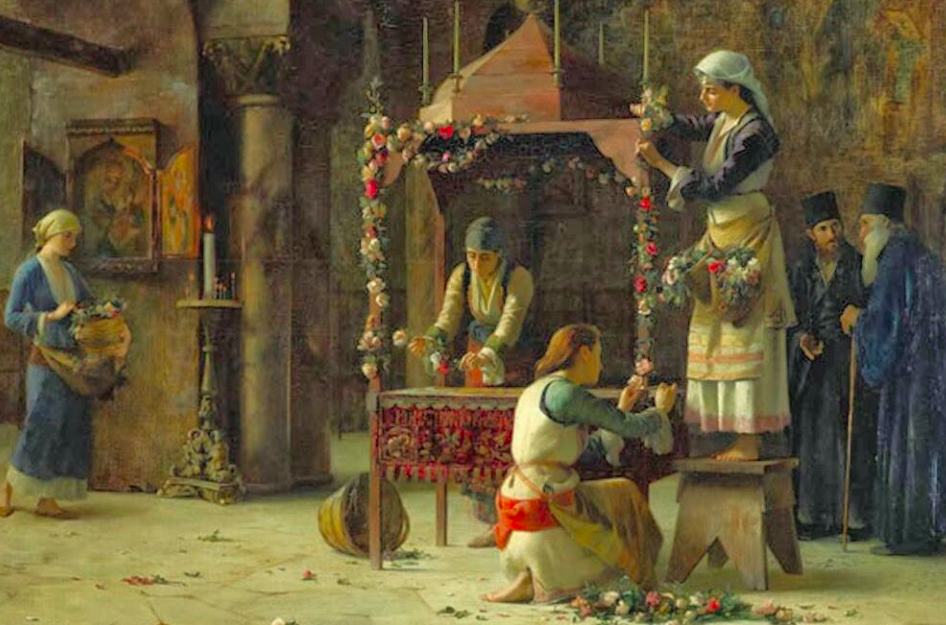 Περνούσαν μπροστά από την εκκλησία, στην αυλή της οποίας τιτίβιζε ένα τσούρμο από κορίτσια, γύρω από ένα μεγάλο τραπέζι γεμάτο ανθάκια. Τα είχαν μαζέψει οι μικρές από κήπους και χωράφια, άγρια και ήμερα λουλούδια που τα συγκέντρωναν στην μεγάλη επιφάνεια για να φτιάξουν τα στολίδια του Επιταφίου. Μιλούσαν και γελούσαν γεμάτες χαρά, μα οι γιαγιάδες περνούσαν απ’ έξω δίχως να σταθούν και δίχως να τους πουν κουβέντα. Από την άλλη μεριά κοίταζαν.
