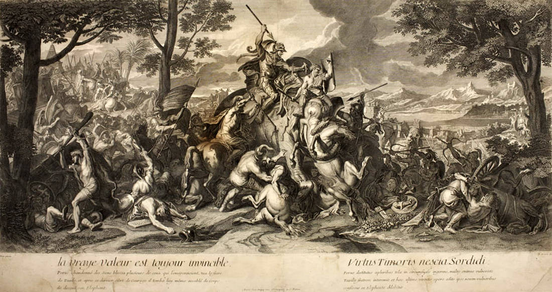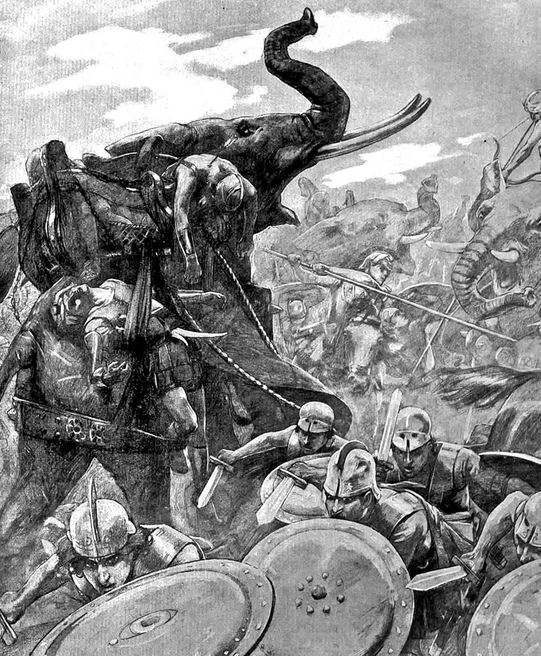 Ο Μέγας Αλέξανδρος βρέθηκε μπροστά στο πρόβλημα να αντιμετωπίσει τα τεράστια ζώα. Ο τρόπος που βρήκε ήταν μεν αποτελεσματικός (και εν τέλει νικηφόρος αφού επικράτησε του Πώρου παρότι υστερούσε αριθμητικά) αλλά κατέληξε σε μία κτηνωδία άνευ προηγουμένου που δεν άφησε ανεπηρέαστο ούτε τον μακεδονικό στρατό.