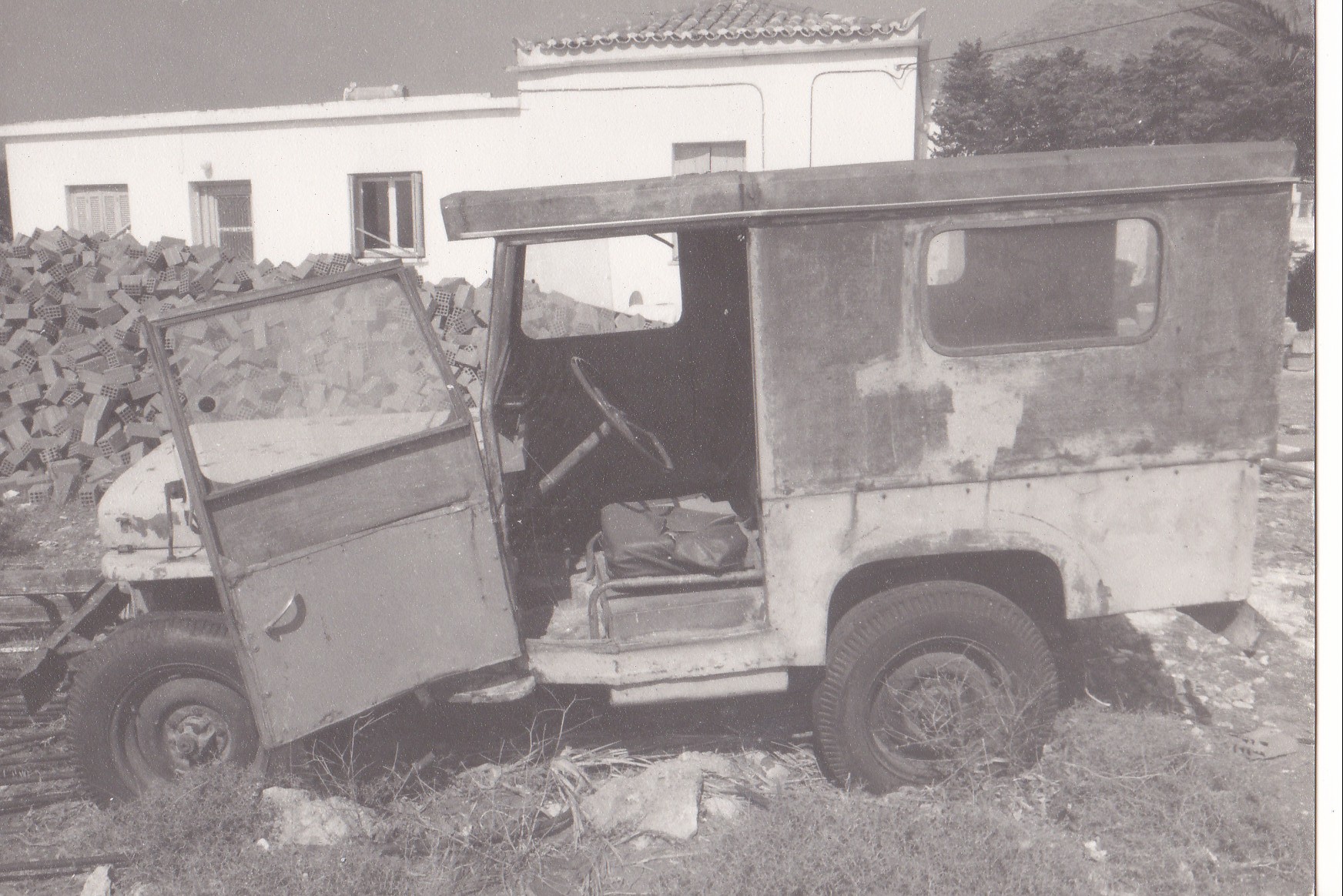 7. Ένα τζιπ αγνώστων λοιπών στοιχείων, όπως βρισκόταν λίγα χρόνια πριν στον Αβλέμονα με εμφανή τα ίχνη μίας ιδιοκατασκευασμένης καρότσας, πιθανότατα στα Κύθηρα. Άγνωστον εάν είναι ακόμη εκεί.