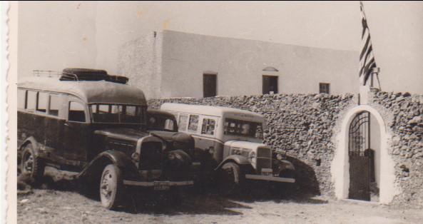 2. Άλλη μία φωτογραφία με λίγες πληροφορίες. Φαίνονται τρία αυτοκίνητα μάλλον στους Αγίους Αναργύρους στο Ξερουλάκι και σε άγνωστη εποχή. Το πρώτο είναι ένα Fargo του Παν. Τζάννε (Μπαλά), που υπάρχει ακόμα σε κακή κατάσταση, είχε δεχθεί όμως πολλές μετατροπές για να παίρνει και επιβάτες, έτσι ώστε έχει χάσει αρκετά από τα αρχικά χαρακτηριστικά του. (Αργότερα η εταιρεία αυτή ενώθηκε με την Dodge-Ντόιτς ). Το δεύτερο δεν διακρίνεται καθαρά, πρέπει όμως να είναι ένα επιβατικό του Ν. Μαλάνου-Λεουσάκη από το Μυλοπόταμο και το τρίτο είναι του Κοσμά(;) Ταμβάκη-Μαϊμάρη από τους Αρέους, χωρίς να έχουμε άλλα στοιχεία γι’ αυτό. Πάντως η φωτογραφία έχει ενδιαφέρον και κάθε επιπλέον πληροφορία ευπρόσδεκτη. (Αρχ. εφημερίδας).