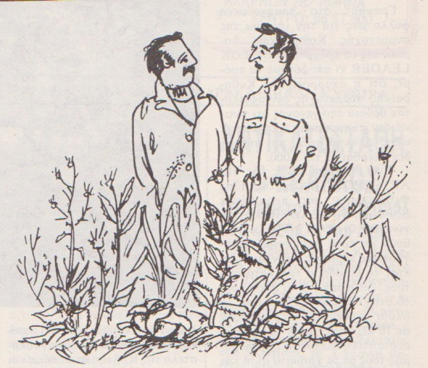 ΤΣΙΡΙΓΩΤΗΣ: Όχι, όχι κύριε γεωπόνε μου. Αλλά, αν καθαρίσουμε το χωράφι από τ’ αγκάθια μπορεί να μας πάνε μέσα, γιατί, λέει, τ’ αγκάθια προστατεύονται. Έτσι και μεις, μαζί με τα λάχανα φυτεύουμε γύρω-γύρω και κανένα ασπάλαθο κι έτσι δεν μας λέει κανένας κουβέντα!