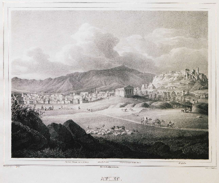 Αποψη της Αθήνας, με την Ακρόπολη και τον Ναό του Ηφαίστου (Θησείο). Από την έκδοση του Ludwig Wrangel «Flüchtige Skizzen aus Ost und Süd», 1839 (Γεννάδειος Βιβλιοθήκη – Αμερικανική Σχολή Κλασικών Σπουδών στην Αθήνα, el.travelogues.gr)