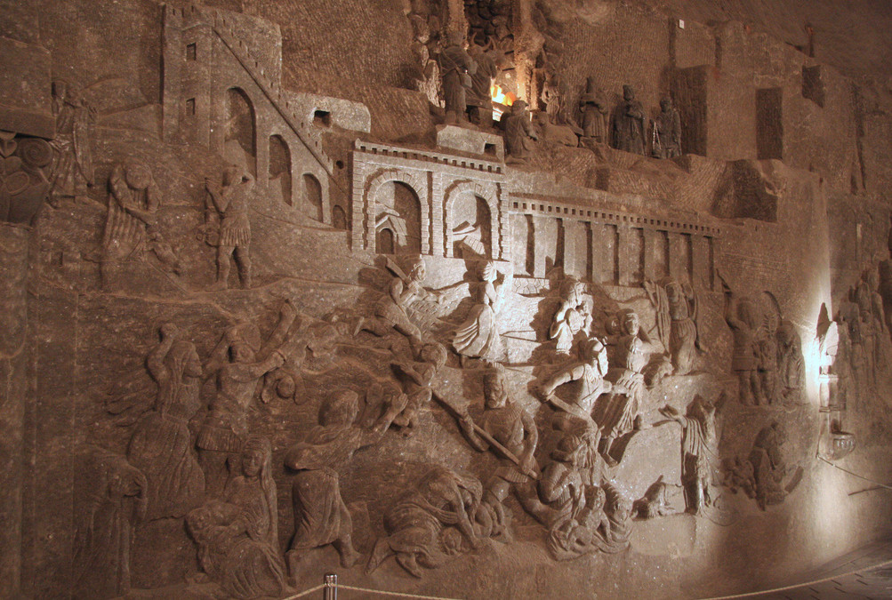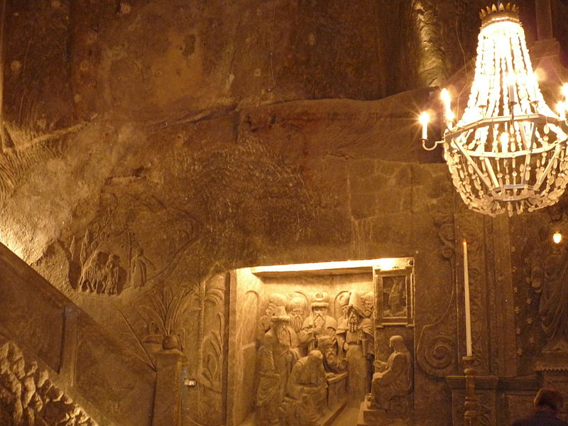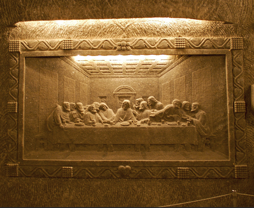 Το πιο αξιόλογο ίσως ανάγλυφο μέσα στο αλατωρυχείο είναι «Ο Μυστικός Δείπνος» του Λεονάρντο ντα Βίντσι. ‘Αλλα αγάλματα από αλάτι είναι της Αγίας Βαρβάρας, προστάτιδας των ανθρακωρύχων, του Πολωνού αστρονόμου Νικολάου Κοπέρνικου, του Πάπα Ιωάννη Παύλου Β’ και άλλων διασημοτήτων.