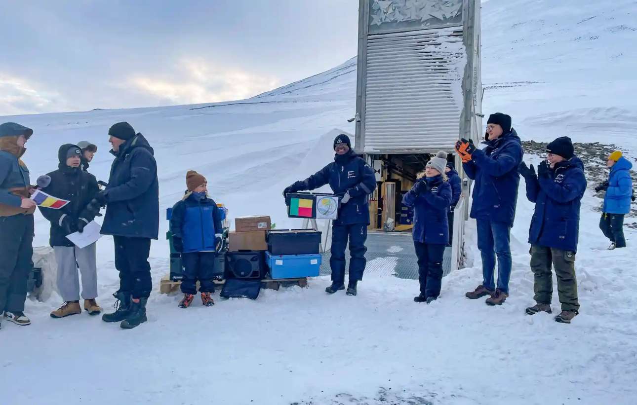 Ο φυτοεπιστήμονας Ινοσέντ Ντόσου Αμινόν από το Μπενίν εναποθέτει σπόρους από τη χώρα του, για πρώτη φορά, στο νορβηγικό θησαυροφυλάκιο (The Crop Trust)