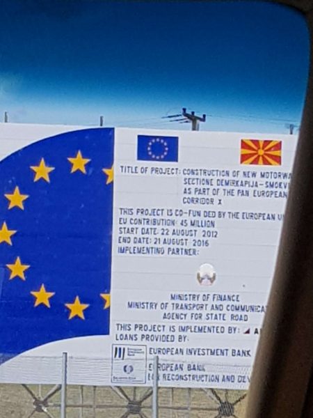 Ο δρόμος προς τη Στρώμνιτσα ήταν κατά κύριο λόγο μια καινούργια εθνική οδός όπου ανά λίγα χιλιόμετρα υπήρχε το σήμα του έλληνα μεγαλοεργολάβου και μια τεράστια επιγραφή με τη σημαία της ΕΕ. Οχι σαν τα δικά μας συγχρηματοδοτούμενα έργα που υπάρχει η μπλε σημαία κάτω – κάτω και με μικρά γράμματα γράφει ότι το έργο συγχρηματοδοτείται από την ΕΕ. Εκεί, τα γράμματα ήταν μεγάλα και η σημαία σε όλο το ύψος της ταμπέλας. Σαν να ήθελε να πείσει τον εαυτό της και τους άλλους. Σαν να ήθελε να σηματοδοτήσει ότι πρόκειται και εκεί για (εν δυνάμει έστω) επικράτεια της Ενωσης.