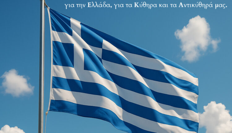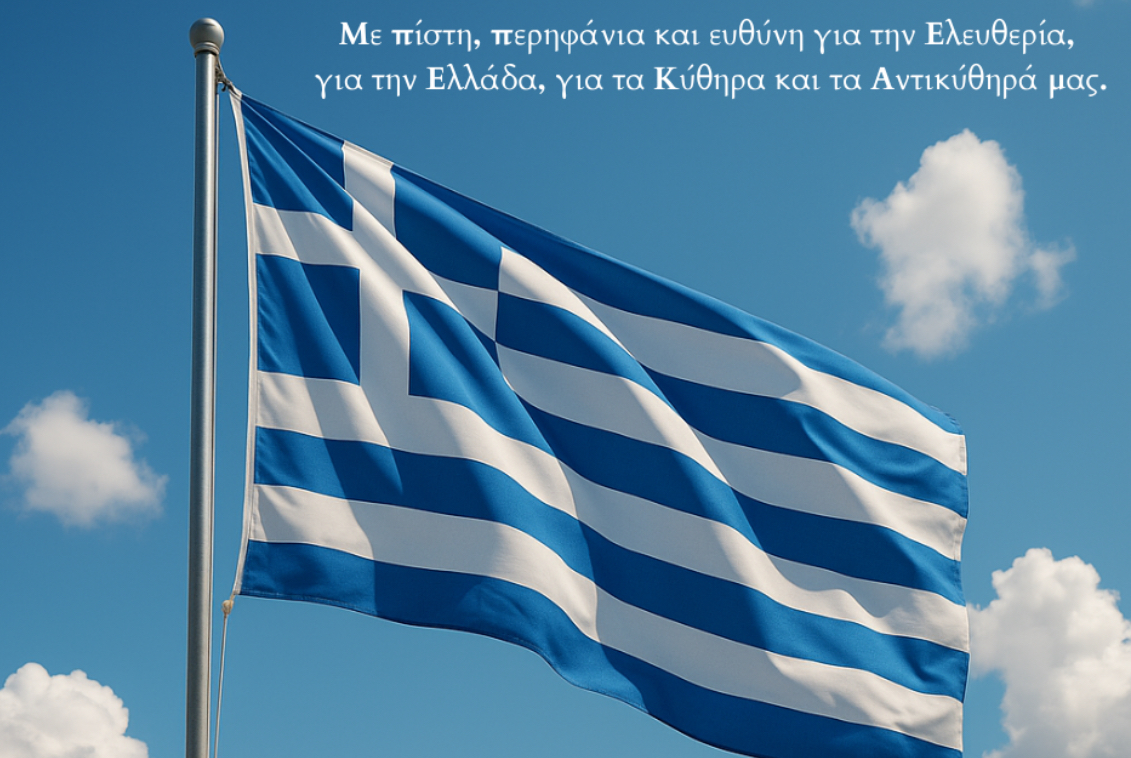 Με πίστη, περηφάνια και ευθύνη για την Ελευθερία, για την Ελλάδα, για τα Κύθηρα και τα Αντικύθηρά μας.