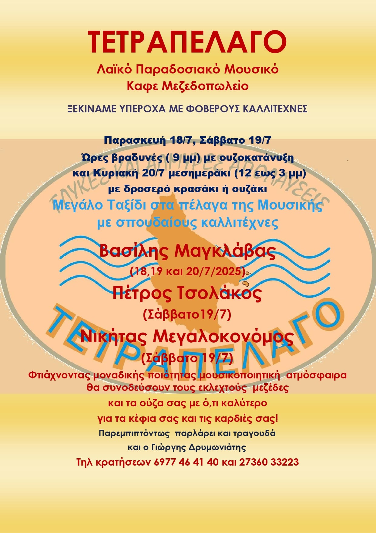 - Μουσικές και ποιητικές βραδιές στο Τετραπέλαγο