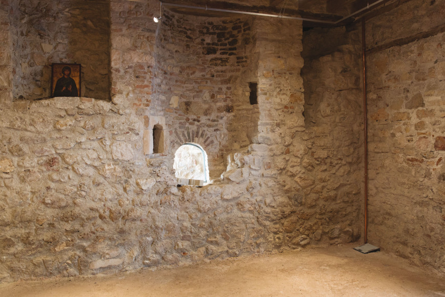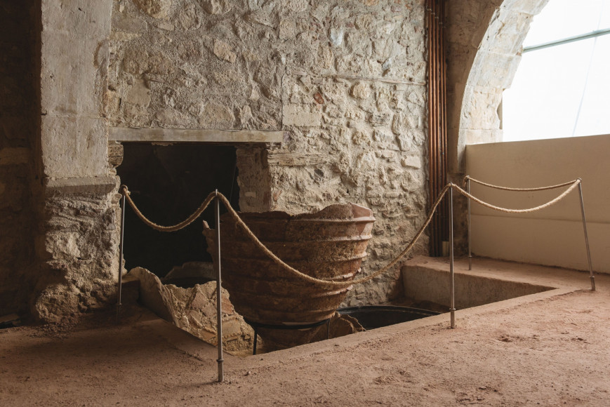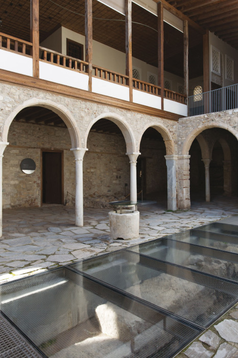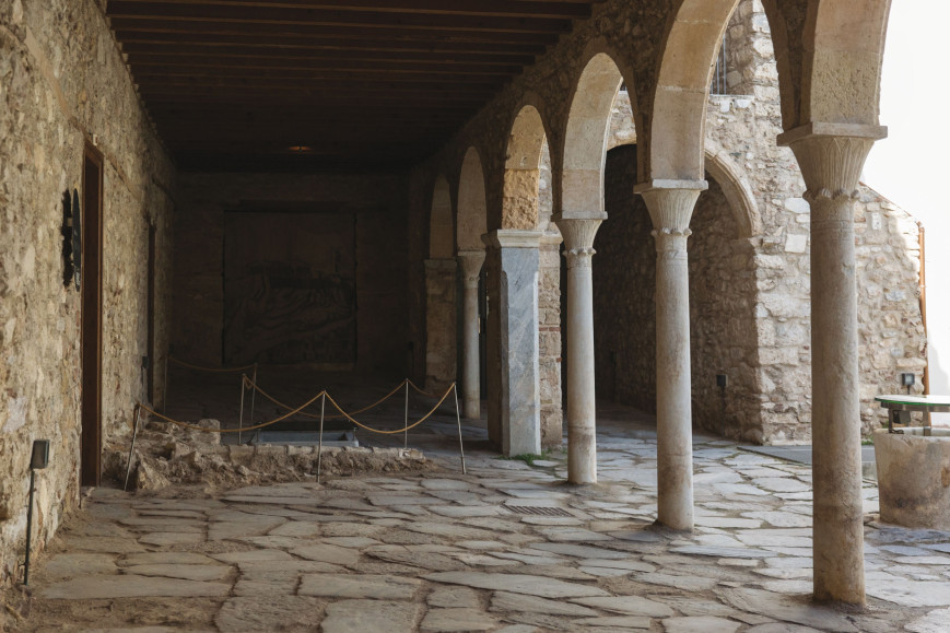 Πάρα πολύ σημαντικά είναι τα αρχαιολογικά ευρήματα στο κατώγι του αρχοντικού. Στην αυλή θα θαυμάσει κανείς το υστερορωμαϊκό τείχος, χτισμένο κάπως βιαστικά το 267 μ.Χ., για να προστατέψει την περιοχή του οικισμού στα βόρεια της Ακρόπολης, ενώ για αιώνες θα λειτουργήσει ως ο μοναδικός και εσωτερικός οχυρός περίβολος της πόλης.