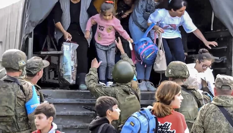 Από τους περίπου 100.000 ανθρώπους που ζουν στην επικράτεια του Ναγκόρνο Καραμπάχ, τα επίσημα στοιχεία της Αρμενίας αναφέρουν ότι περισσότερα από 13.550 άτομα είχαν ήδη εγκαταλείψει τις εστίες τους από τις 8 το πρωί της Τρίτης, ενώ φωτογραφίες που τραβήχτηκαν από την πρωτεύουσα του, Στεπανακέρτ, απεικονίζουν τεράστιες ουρές πολιτών, με τις βαλίτσες ανά χείρας ,να συνοδεύεται από Ρώσους μεσολαβητές.