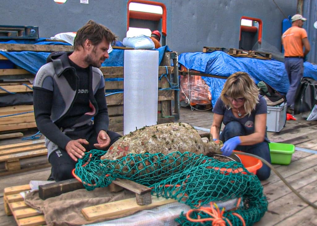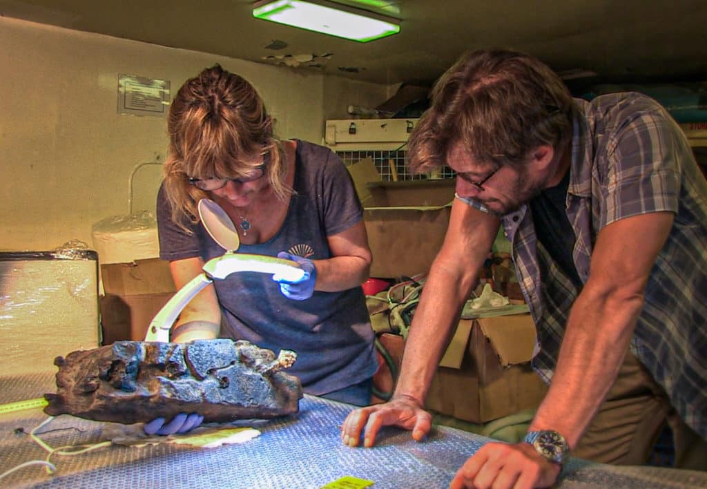 Αρχικά έγινε εντοπισμός εκ νέου του χώρου του ναυαγίου και νέα οριοθέτηση μετά από την τελευταία έρευνα του Σεπτεμβρίου 2017. Ανελκύστηκαν πέντε σάκοι με άμμο, που είχαν αφεθεί στον βυθό από την προηγούμενη ανασκαφική περίοδο, τα προϊόντα των οποίων κοσκινίστηκαν με μεγάλη προσοχή από εξειδικευμένη συντηρήτρια της Εφορείας Εναλίων Αρχαιοτήτων και παρουσία δύο αρχαιολόγων. Κατά τη διαδικασία του διαχωρισμού συλλέχθηκαν οστά, τα οποία πρέπει να αναλυθούν, πυρήνες κατά πάσα πιθανότητα ελιάς, χάλκινα καρφιά από το πλοίο καθώς και ένας μπρούτζινος δακτύλιος άγνωστης προς το παρόν χρήσης.