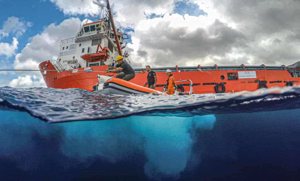 Η Διευθύντρια της έρευνας, καταδυόμενη αρχαιολόγος Δρ Αγγελική Γ. Σίμωσι, καταδύθηκε και παρέμεινε στο πεδίο καθόλη τη διάρκεια των ερευνών της εικοσαμελούς αποστολής, το μέγεθος της οποίας θεωρείται για πρώτη φορά τόσο εντυπωσιακό, αφού πέραν των συμμετεχόντων, που διέθεταν άρτια εκπαίδευση αλλά και καταδυτική εμπειρία στα βάθη του ναυαγίου, υπήρξε υποστήριξη των επιχειρήσεων από το σκάφος «Τyphoon». Το μοναδικό στο Αιγαίο αυτό σκάφος είναι μήκους 72 και πλάτους 16 μέτρων, και είναι εξοπλισμένο με υπερσύγχρονα μέσα ναυτικής πλοήγησης. Στην επιχειρησιακή πλατφόρμα του φιλοξενούνται πέντε μεγάλα φουσκωτά, σε επιφυλακή ανά πάσα στιγμή για τις απαιτούμενες ανελκύσεις.