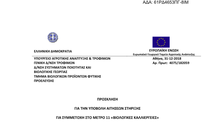 - Νέα προκήρυξη Βιολογικής Γεωργίας ύψους 120 εκατ. ευρώ