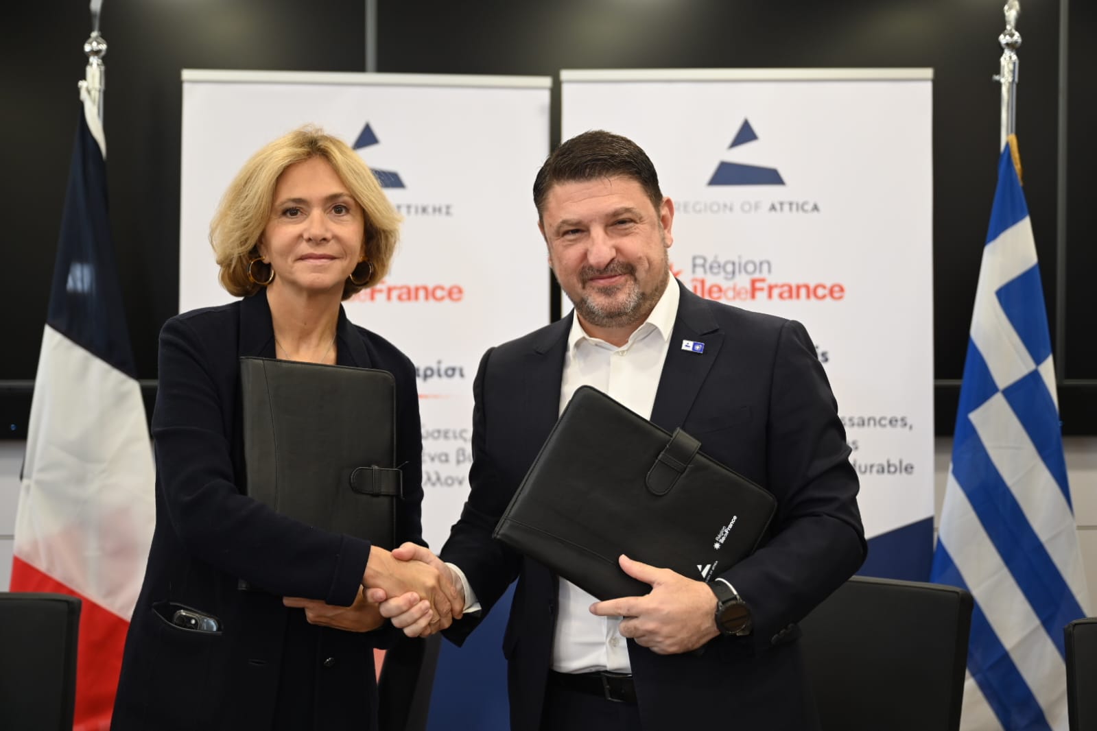 Λίγες ώρες πριν από την έναρξη του Athens Talks, η Πρόεδρος της Île de France και ο Περιφερειάρχης Αττικής Νίκος Χαρδαλιάς υπέγραψαν Πρωτόκολλο Συναντίληψης και Συνεργασίας μεταξύ των δύο μητροπολιτικών περιφερειών για την αντιμετώπιση της κλιματικής κρίσης.