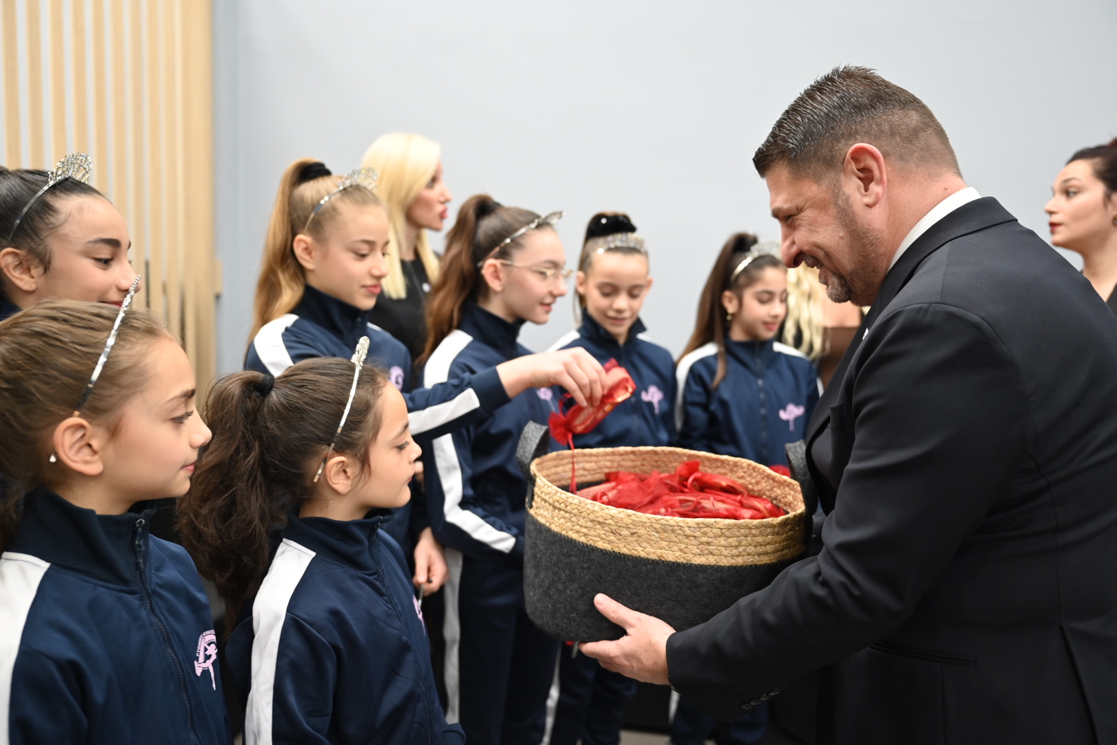 «Ποδαρικό» έκαναν τα κορίτσια του Γυμναστικού και Πολιτιστικού Ομίλου «Ρυθμική Κίνηση» από τον Άγιο Δημήτριο, τα οποία είπαν στον Περιφερειάρχη τα κάλαντα, ντυμένα με τα στολές τους. Ο κ. Χαρδαλιάς ρώτησε ένα-ένα τα ονόματα των κοριτσιών, τους μοίρασε δώρα και ενημερώθηκε από την επικεφαλής του Ομίλου για τις – άριστες – επιδόσεις τους.
