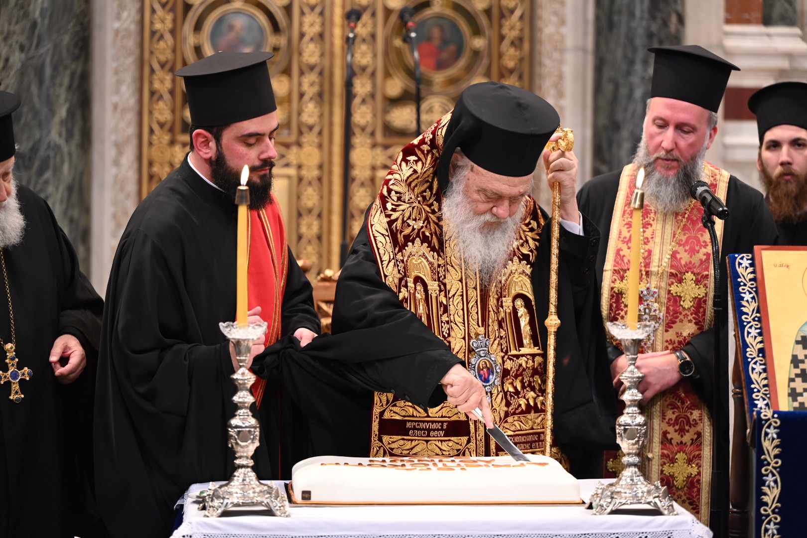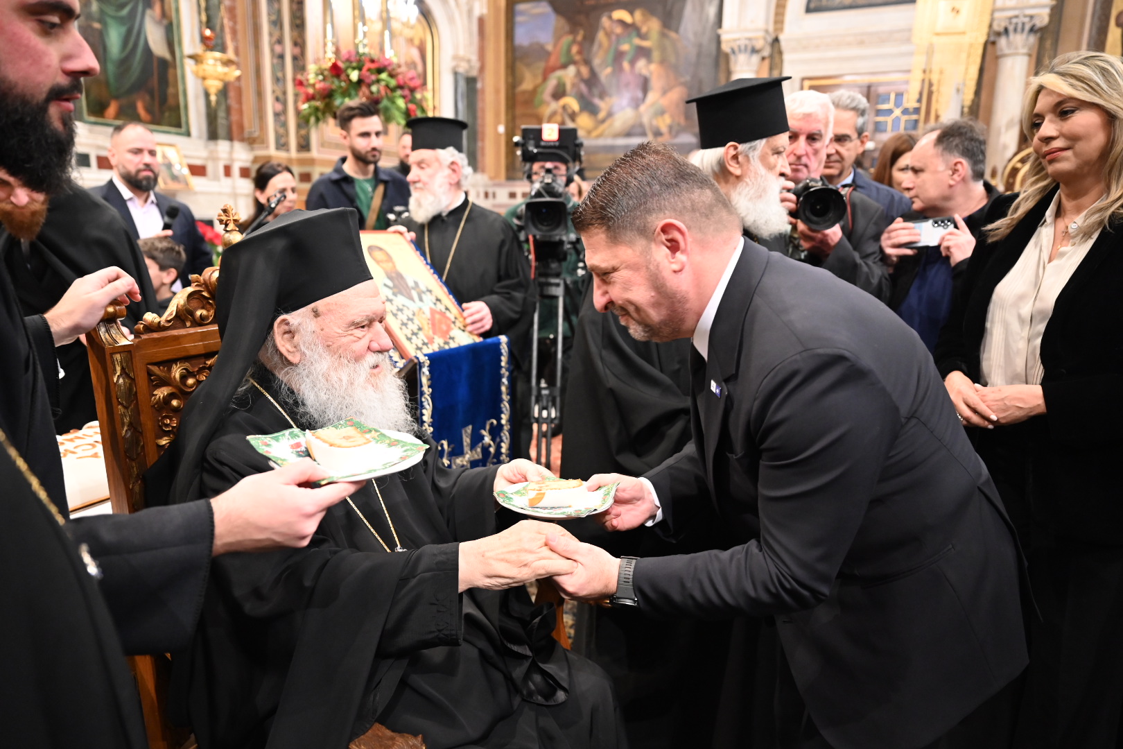 Αμέσως μετά, ο κ. Χαρδαλιάς μετέβη στον Ιερό Καθεδρικό Ναό Αθηνών για την τελετή κοπής της βασιλόπιτας της Ιεράς Αρχιεπισκοπής Αθηνών από τον Μακαριώτατο Αρχιεπίσκοπο Αθηνών και Πάσης Ελλάδος κ.κ. Ιερώνυμο.