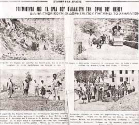 Το 1960 ήταν που βλέπαμε τον δρόμο που διασχίζει τον κάμπο από τ’ Αρωνιάδικα στον Ποταμό, να μαυρίζει κι έτσι μαύρος να ‘ρχεται μέρα με τη μέρα προς το μέρος μας. «Τον κάνουν άσφαλτο!», μας εξήγησαν. Στο τέλος ο οδοστρωτήρας έφτασε και στο γεφύρι που το περνάγαμε 4 φορές τη μέρα. (Μόνο τα Σάββατα δεν είχαμε απόγευμα σχολείο). Αμέτρητες φορές ο οδοστρωτήρας πήγε κι ήλθε πατώντας σπασμένες ασπριδερές πέτρες, που τις έστρωνε με τέχνη, αφήνοντάς μας έκπληκτους. Τελικά μαύρισε με την άσφαλτο και το γεφύρι κι ο δρόμος μέχρι το σχολείο. Ο δάσκαλος, ο Γιάννης Μελιτάς, φρόντισε κι η άσφαλτος δεν σταμάτησε στο Νοσοκομείο, όπως προ- βλεπόταν, αλλά μετά το σχολείο, για να μη περπατάμε σε λάσπες. Για να ευχαριστήσουμε τους εργαζόμενους της ασφαλτόστρωσης πήγαμε στα σπίτια μας και φέραμε ό,τι υπήρχε για να τους κάνουμε το τραπέζι. Το σχολείο είχε υποδομή για μαγείρεμα και το τραπέζι στρώθηκε. Θυμάμαι ένα τεράτιο τρούλο καθαρισμένων σφιχτών αυγών στη μέση του τραπεζιού. Αργότερα έμαθα πως την άσφαλτο την οφείλαμε στο Νοσοκομείο, γιατί χρηματοδοτήθηκε από την ίδια Ερανική Επιτροπή, για να χουν άνετη και γρήγορη πρόσβαση όλοι οι Τσιριγώτες. Ως «παρενέργεια» της ασφαλτόστρωσης υπήρξε η κατακρήμνιση των τοιχωμάτων του δημόσιου πηγαδιού που βρίσκεται κοντά στο Νοσοκομείου (Μυρτίδι) λόγω του βάρους του οδοστρωτήρα που στάθμευε γύρω του. Ο δάσκαλος μας οδήγησε με προσοχή στην περιοχή, να δούμε το σπάνιο και πρωτοφανές φαινόμενο. Εντύπωση μας έκανε και το γεγονός ότι τον οδοστρωτήρα ακολουθούσε άτομο που είχε τυλιγμένα τα παπούτσια του με βρεγμένες λινάτσες, για να σβήνει τ’ αναμμένα κάρβουνα που κάθε τόσο έπεφταν, μιας κι ήταν ατμοκίνητος κι έκαιγε κάρβουνο.
