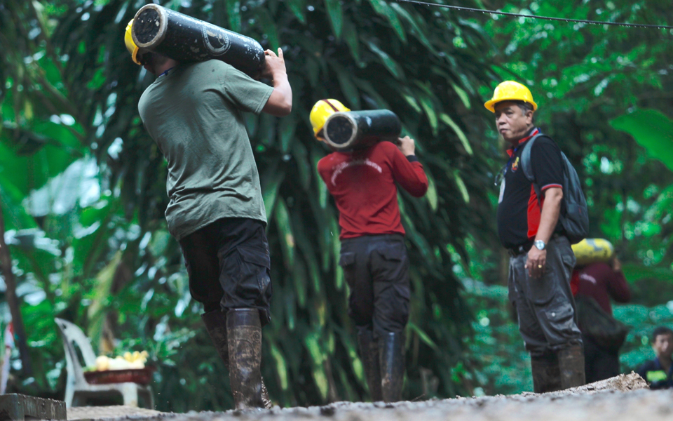 Το έργο των Ταϊλανδών έσπευσαν να συνδράμουν ειδικοί από διάφορες χώρες. Το Βρετανικό Συμβούλιο Διάσωσης σε Σπήλαια βοηθάει τους πεζοναύτες. Ιάπωνες μηχανικοί συνεργάστηκαν με ντόπιους συναδέλφους τους για την εγκατάσταση του συστήματος άντλησης υδάτων από το σπήλαιο. Ο Γερμανός ειδικός στις καταδύσεις Τόρστεν Λέχλερ συμμετέχει επίσης στο δύσκολο έργο της διάσωσης, όπως και συνάδελφοί του από την Αυστραλία. Ακόμη και ειδικοί στην παρατήρηση πουλιών, που γνωρίζουν τα κατατόπια, επιστρατεύονται στην αναζήτηση φρεάτων, που θα μπορούσαν να επεκταθούν ώστε να ανεβάσουν τα παιδιά με σχοινιά.