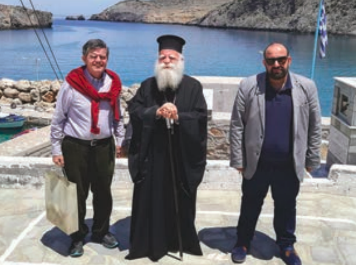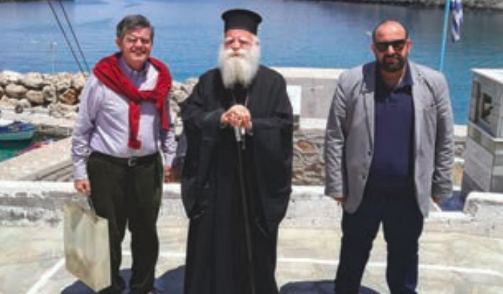 Αφορμή για την επίσκεψη ήταν το κοινό αίτημα Δημάρχου-Μητροπολίτη για την ανακαίνιση, συντήρηση και ανακατασκευή του Ναού και όλων των κτιρίων του Αγίου Μύρωνος, τα παλαιότερα των οποίων (κελιά) χρονολογούνται στις αρχές του 18ου αιώνα και συνδέονται άρρηκτα με τη νεότερη ιστορία και τον πολιτισμό του νησιού.