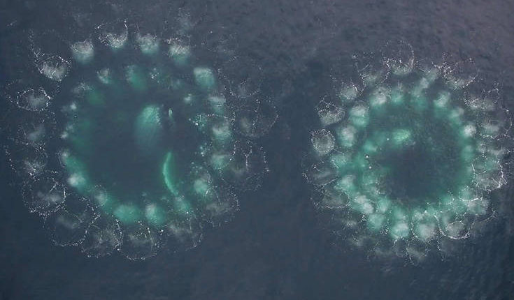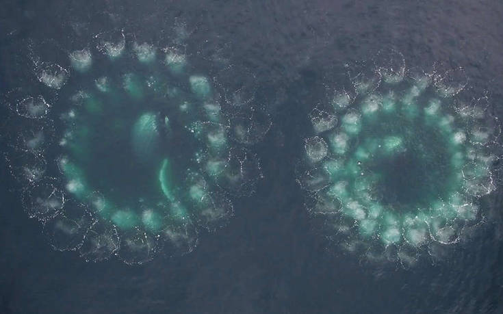 Θρίαμβος της επιστήμης χαρακτηρίστηκε το υλικό που καταγράφηκε για πρώτη φορά με τον τρόπο που τρέφεται η μεγάπτερη φάλαινα, με αυτές τις φυσαλίδες που σχηματίζουν δίχτυ και αιχμαλωτίζουν τη λεία.
