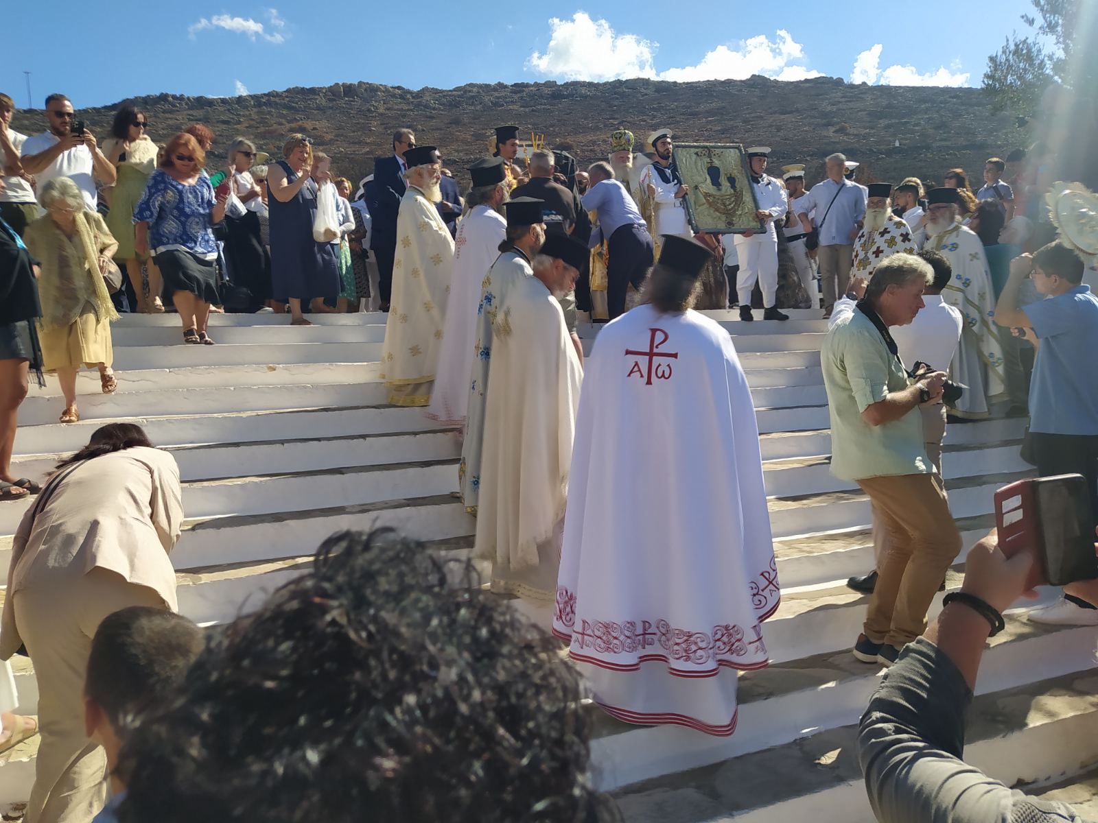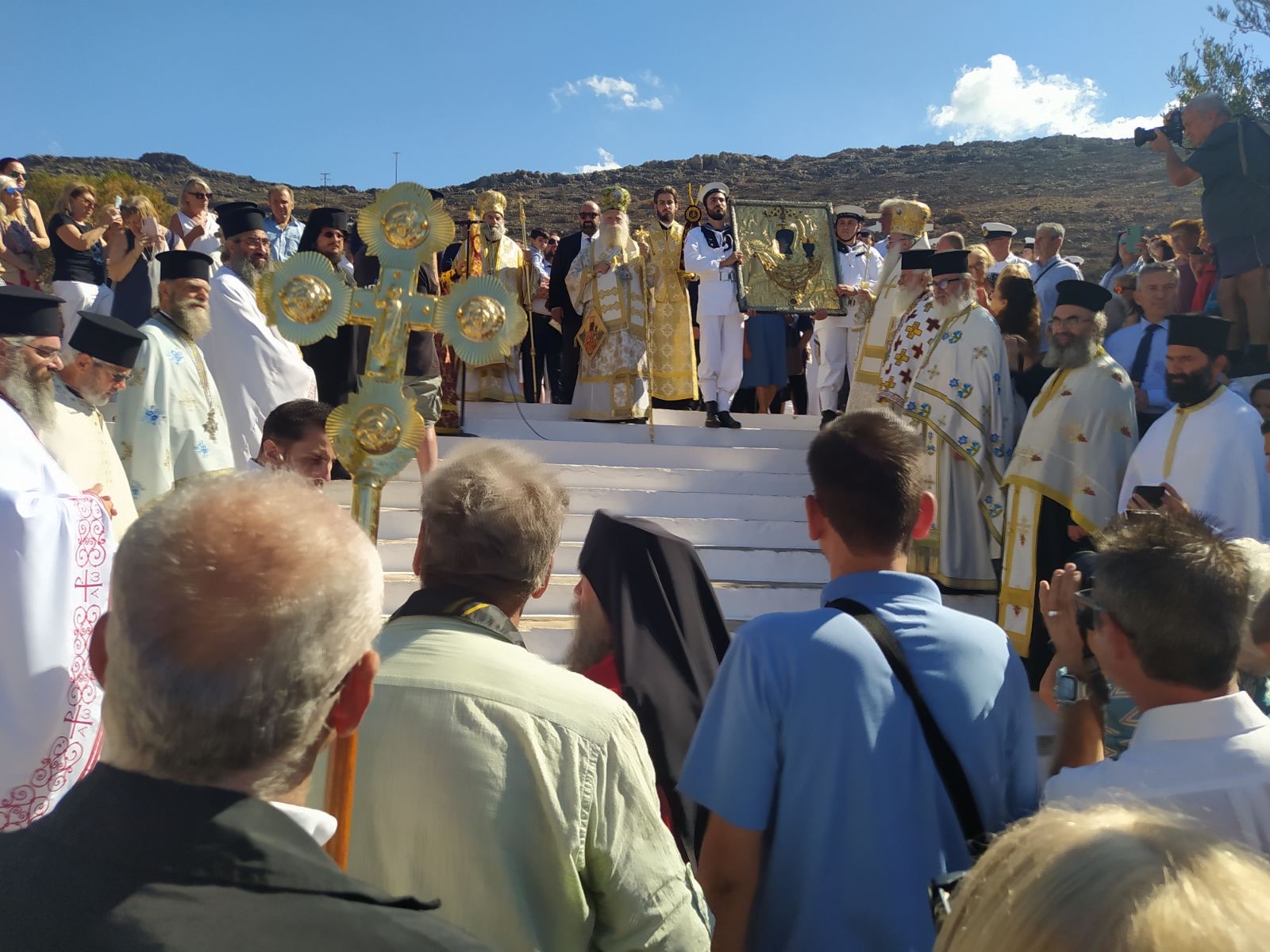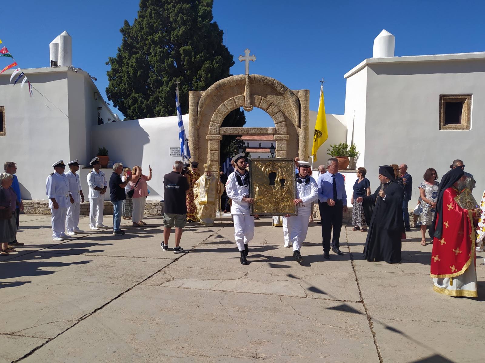 Το λαμπρό εορτασμό συμπλήρωσαν, η περίφημη μπάντα και άγημα του Πολεμικού Ναυτικού, που ήρθε με την τορπιλάκατο «Τρουπάκης», ενώ για πρώτη φορά φέτος, την ώρα της λιτανείας στον προαύλιο χώρο του Προσκυνήματος, έκαναν υπερπτήσεις δύο αεροπλάνα της Πολεμικής Αεροπορίας.