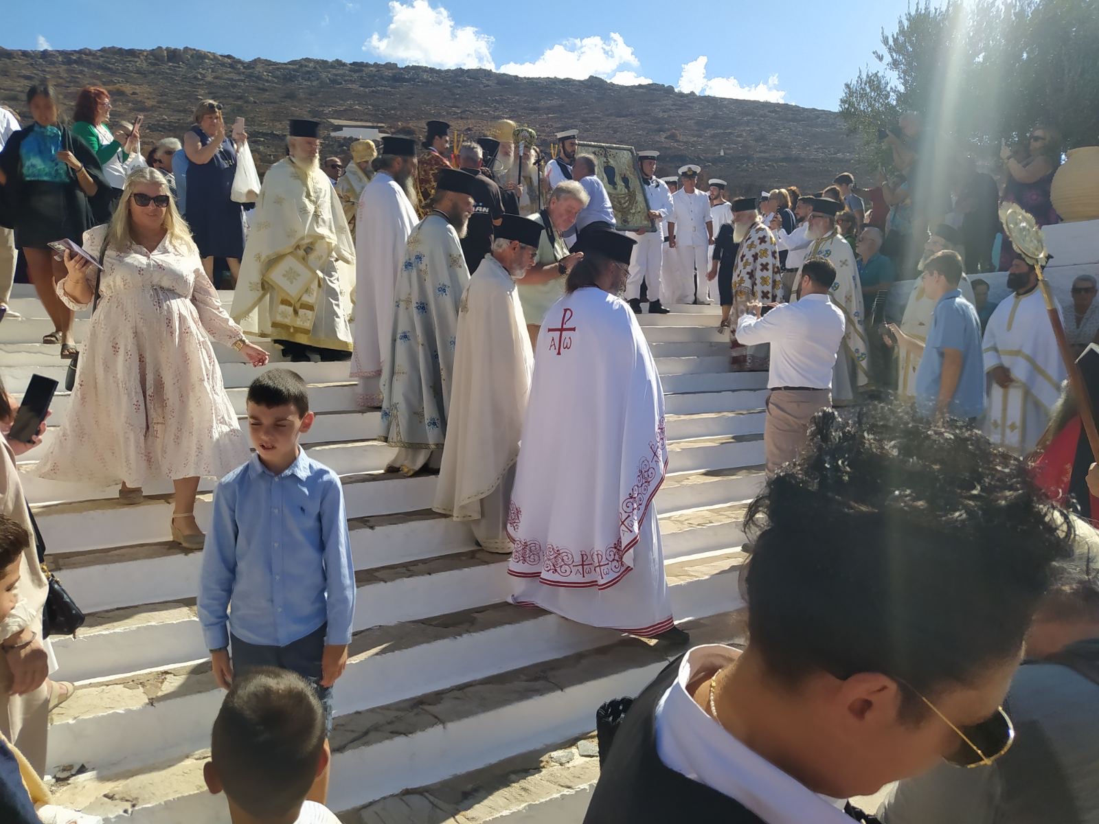 Γιορτάστηκε στις 24 Σεπτεμβρίου η Παναγία Μυρτιδιώτισσα με μία καλοκαιρινή ημέρα και πλήθος κόσμου, αλλά με το απόκοσμο τοπίο από την πρόσφατη πυρκαγιά γύρω από το Προσκύνημα να θυμίζει πόση ανάγκη προστασίας έχουν τα ιερά Προσκυνήματα όπως, βέβαια, και όλο το νησί.