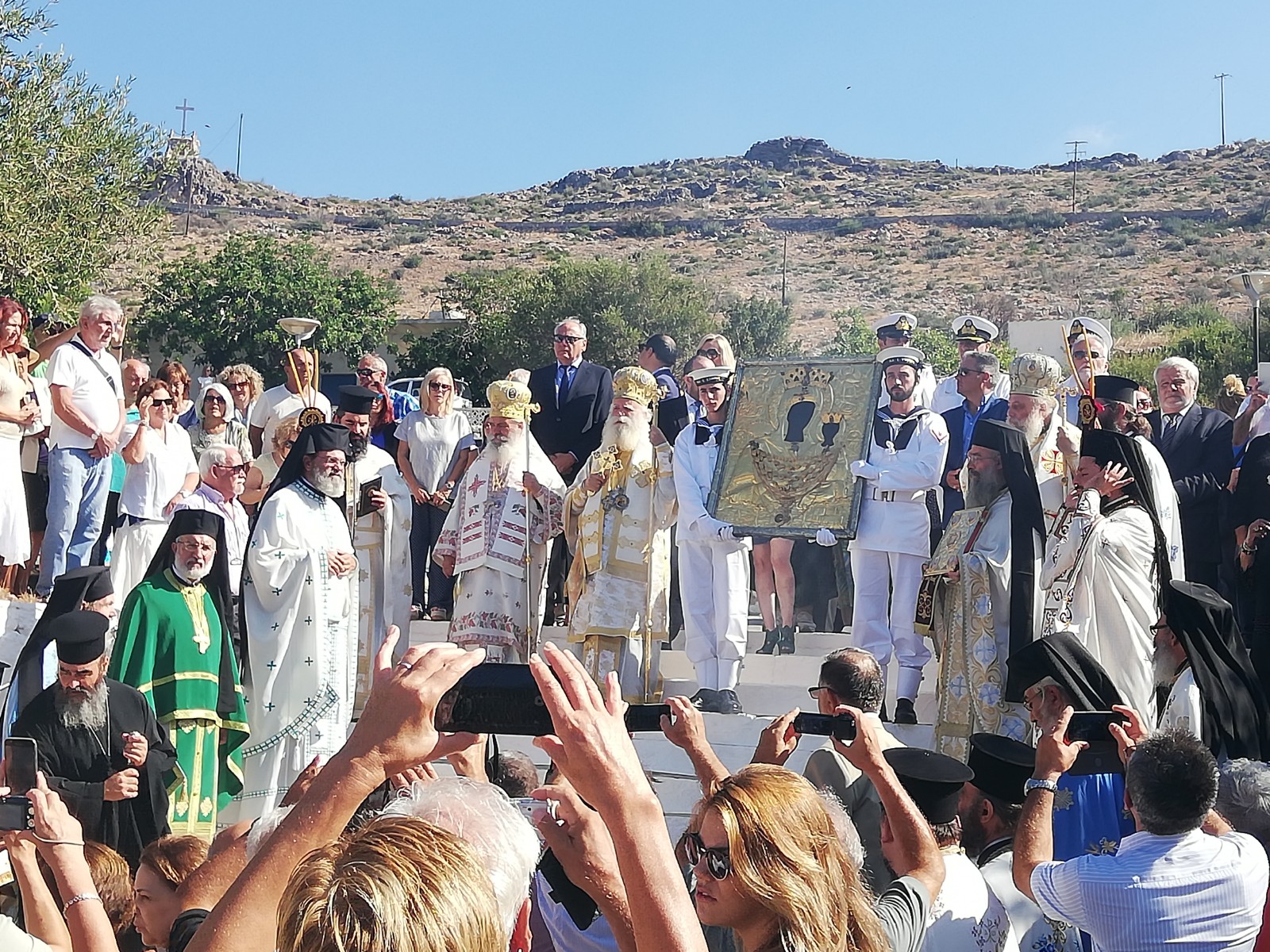 Έγινε με λαμπρότητα και φέτος ο εορτασμός της Παναγίας Μυρτιδιώτισσας στα Κύθηρα. Περίπου δέκα πούλμαν με εκδρομείς έφθασαν στο νησί, ενώ δεν ήταν λίγοι και οι επισκέπτες που δεν ήρθαν με οργανωμένες εκδρομές. Οι περισσότεροι φέτος ήρθαν από Κρήτη, ενώ, σύμφωνα με όσους παρακολουθούν την κίνηση το μήνα αυτόν, όλο το Σεπτέμβριο είχαμε σημαντικές αφίξεις από την Κρήτη δικαιώνοντας ασφαλώς όλους όσους επιμένουμε σταθερά κάθε χρόνο στη συγκοινωνιακή σύνδεση του νησιού μας με τη μεγαλόνησο, κάτι το οποίο πολλοί ήταν εκείνοι που ήταν έτοιμοι να ζητήσουν την εγκατάλειψη ή την υποβάθμιση της γραμμής, η οποία βέβαια μπορεί να συντηρηθεί μόνο με επιδότηση. Σίγουρα, πάντως, χρειάζεται ακόμα καλλίτερη οργάνωση και τουριστική προβολή στην Κρήτη, η οποία, την εποχή αυτή, μπορεί να τροφοδοτήσει ικανοποιητικά τον τοπικό τουρισμό και να δώσει ανάσες στους επιχειρηματίες που προσπαθούν να επιβιώσουν στη μικρή τουριστική περίοδο των καλοκαιρινών μηνών. Στον εορτασμό παρέστη άγημα με μπάντα του Πολεμικού Ναυτικού από την Κρήτη, ενώ σκάφος του λιμενικού ναυλοχούσε στο Καψάλι. (Φωτογραφίες, Ανδρέας Λουράντος–Κονταράτος)