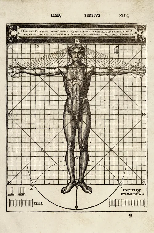 Σύμφωνα με τον Αυγουστίνο, δεν είναι πια ο άνθρωπος το μέτρο όλων των πραγμάτων, αλλά ο Θεός. Το ιδεώδες του Βιτρούβιου συνοψίζεται και τελειούται στην απεικόνιση του Σταυρωμένου Χριστού, από την οποία τελικά εμπνέεται και ο Ντα Βίντσι στο πασίγνωστο σχέδιό του.