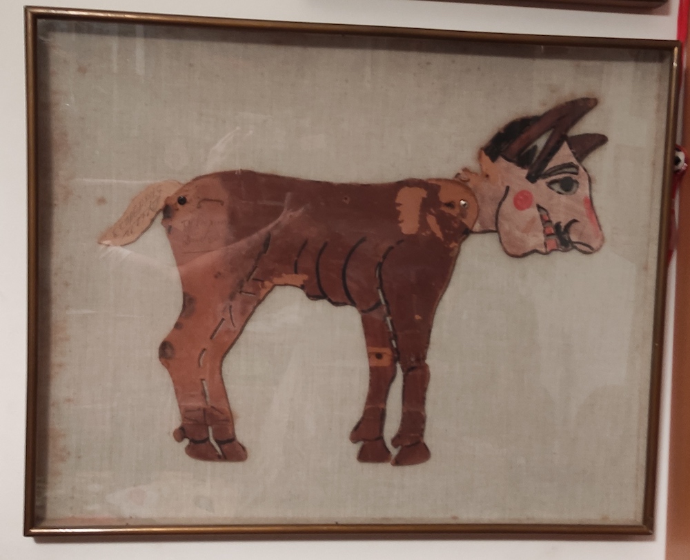 Οι φιγούρες είναι πρωτότυπες από προπολεμικές παραστάσεις του Ευγένιου Σπαθάρη με τίτλο: Η ΠΤΩΧΗ ΜΑΡΙΑ και Ο ΚΑΡΑΓΚΙΟΖΗΣ ΓΑΪΔΑΡΟΣ. (Συλλογή Εμμ. Καλλίγερου)
