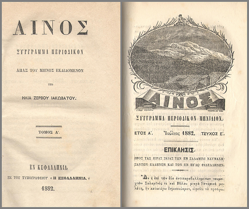 Άρθρο της περιοδικής εκδόσεως «ΑΙΝΟΣ» που εξέδωσε στην Κεφαλληνία το έτος 1882 ο Ηλίας Ζερβού Ιακωβάτος.