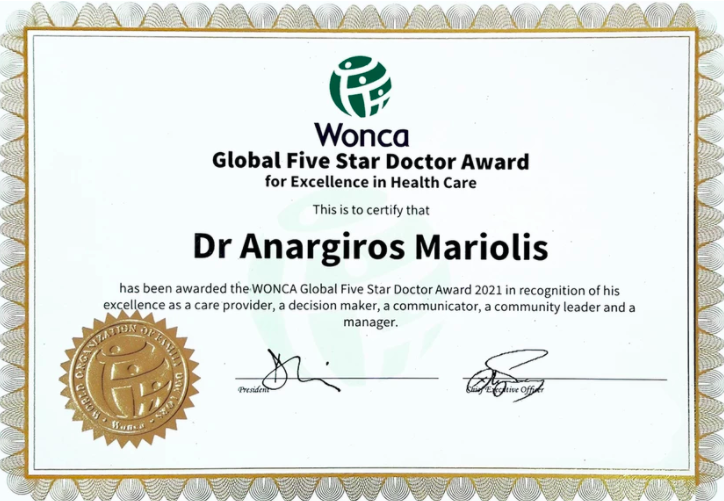 Ο Ανάργυρος Μαριόλης είχε ανακηρυχθεί το 2019 καλύτερος Οικογενειακός Ιατρός της Ευρώπης, ενώ από τον Σεπτέμβριο του 2020 είναι μέλος της Επιτροπής Εμπειρογνωμόνων του υπουργείου Υγείας.