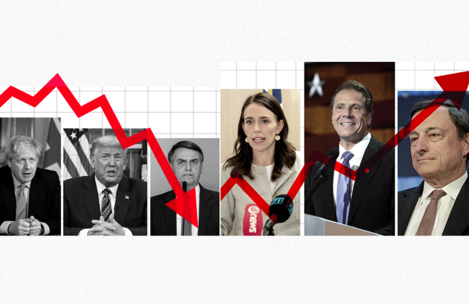 Κατά τη διάρκεια των τελευταίων εβδομάδων, καθώς η κρίση του κορονοϊού λαμβάνει δραματικές διαστάσεις, ηγέτες Ευρωπαίοι όπως ο πάλαι ποτέ δημοφιλής πρώην πρωθυπουργός της Ιταλίας Ματέο Ρέντσι, αλλά και αρχηγοί κρατών παγκόσμιου βεληνεκούς όπως ο αμερικανός πρόεδρος Ντόναλντ Τραμπ, ο βραζιλιάνος ομόλογός του Ζαΐρ Μπολσονάρο αλλά και ο πρωθυπουργός της Βρετανίας Μπόρις Τζόνσον, είδαν τη δημοτικότητά τους να καταρρέει.