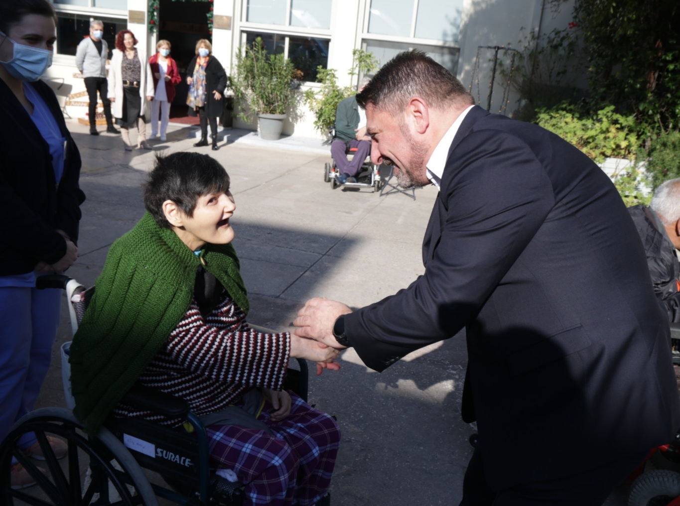 Θερμές ευχές για το νέο έτος αντάλλαξε ο Περιφερειάρχης Αττικής, Νίκος Χαρδαλιάς, με τους περιθαλπόμενους και το προσωπικό στο Άσυλο Ανιάτων. Ο κ. Χαρδαλιάς ενημερώθηκε από την Πρόεδρο κ. Ιωάννα Ηλιάδη, τους γιατρούς και τους νοσηλευτές για την κοινωνική προσφορά του Ιδρύματος, περιηγήθηκε στους χώρους, εξήρε το έργο του προσωπικού, συνομίλησε με τους φιλοξενούμενους περιθαλπόμενους, τη Βάσω, τον Γιάννη, τον Διονύση, τη Μαρία από το Αργοστόλι που φέτος έκλεισε τα εκατό της χρόνια και έκοψαν μαζί την πρωτοχρονιάτικη βασιλόπιτα.