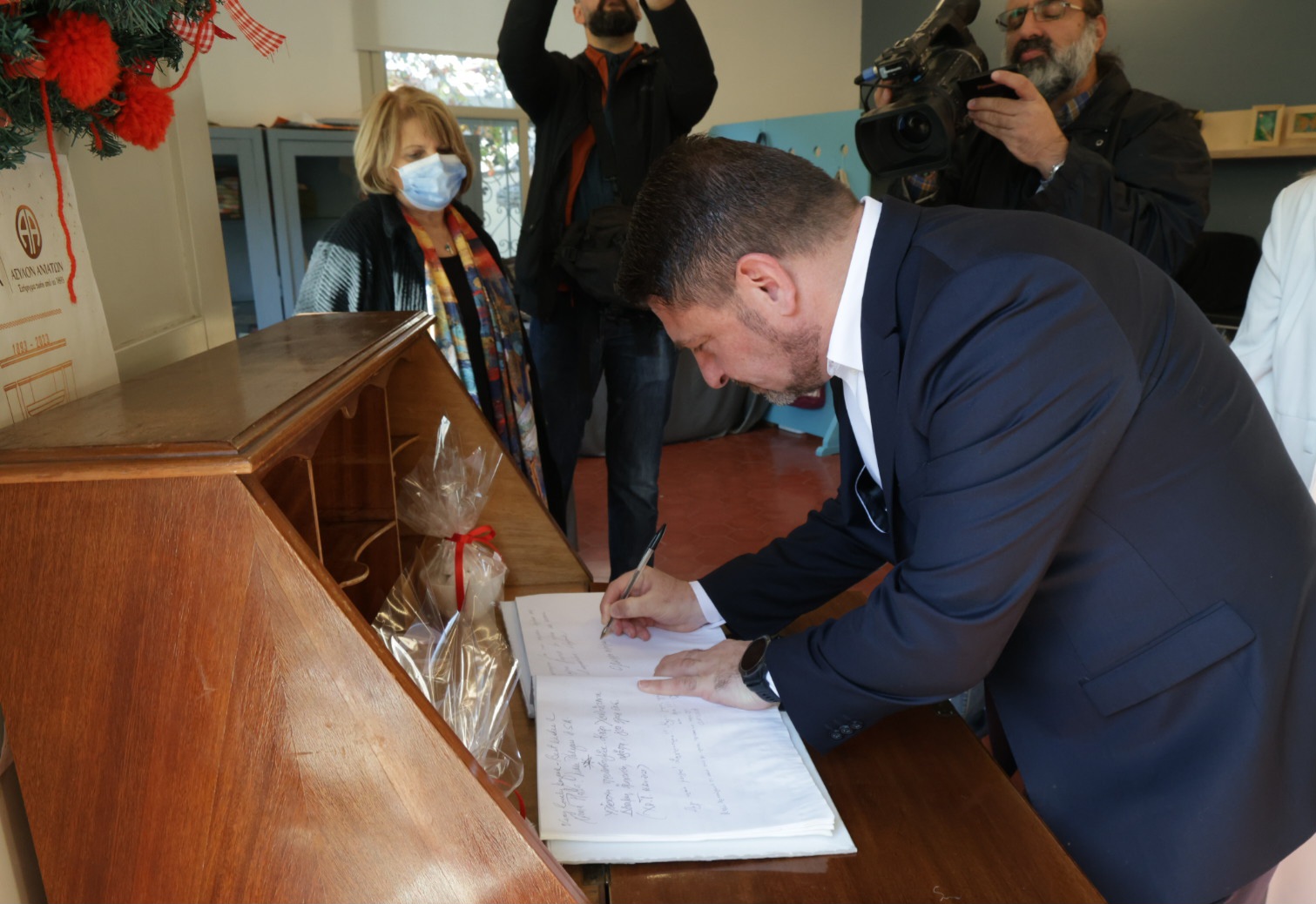Τον Περιφερειάρχη Αττικής, Νίκο Χαρδαλιά, υποδέχθηκαν και συνόδευσαν στους χώρους, η κ. Ιωάννα Ηλιάδη Πρόεδρος Δ.Σ. Ασύλου Ανιάτων, η κ. Σαμπίνα Σερπιέρη Υπεύθυνη Δημοσίων Σχέσεων και Εθελοντών, ο κ. Γιώργος Γιαννακός Γενικός Διευθυντής Ιδρύματος Περιθάλψεως Χρονίως Πασχόντων – Παθολόγος, Λοιμωξιολόγος, ο κ. Γιώργος Καλύβας Αναπληρωτής Διευθυντής Νοσηλευτικής Υπηρεσίας, ο κ. Γιάννης Βασιλόπουλος και ο κ. Τάσος Χουντής από το Σωματείο Εργαζομένων Ασύλου Ανιάτων και Ιδρύματος Περιθάλψεως Χρονίως Πασχόντων και ο κ. Ελευθέριος Σκιαδάς τέως πρόεδρος Δημοτικού Συμβουλίου Δήμου Αθηναίων.
