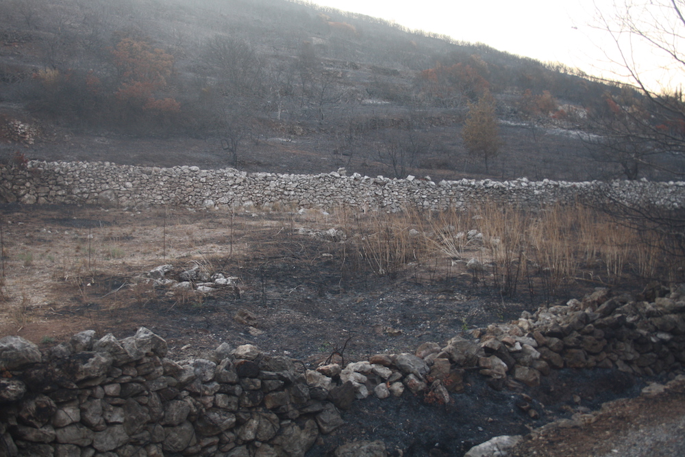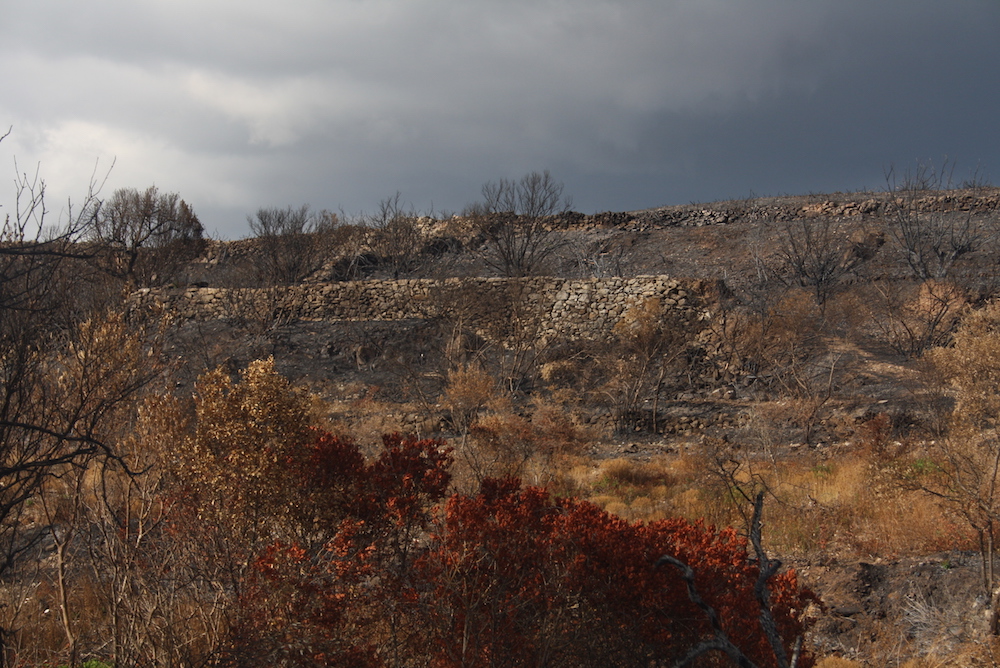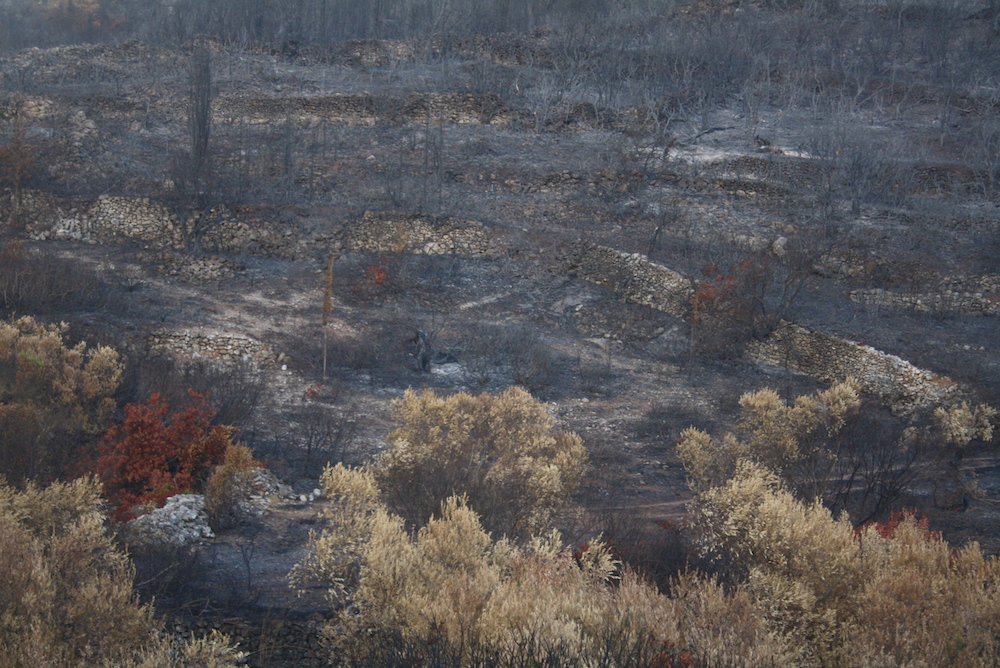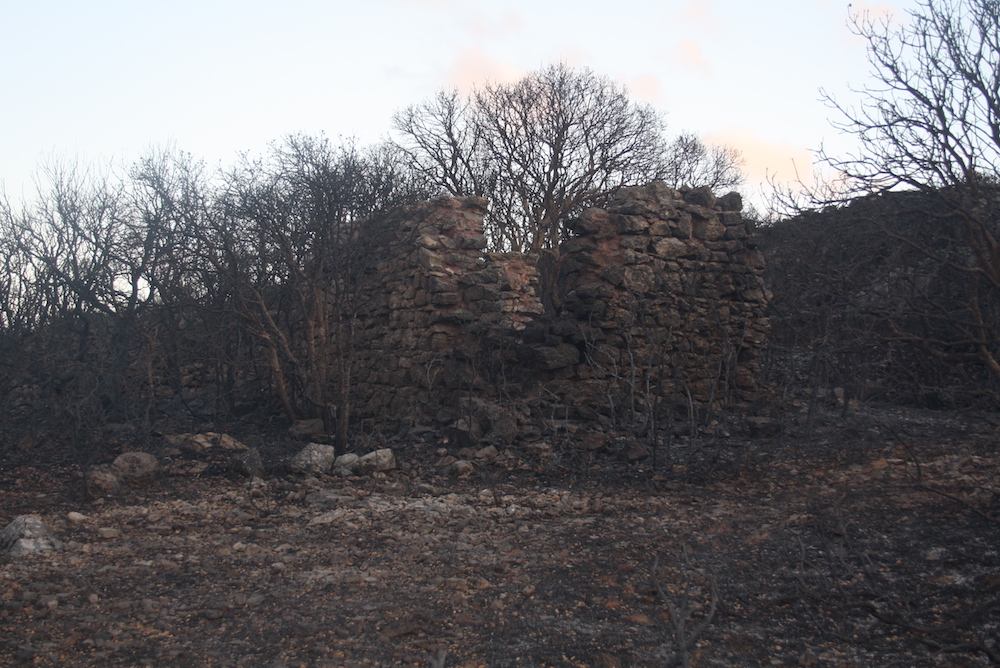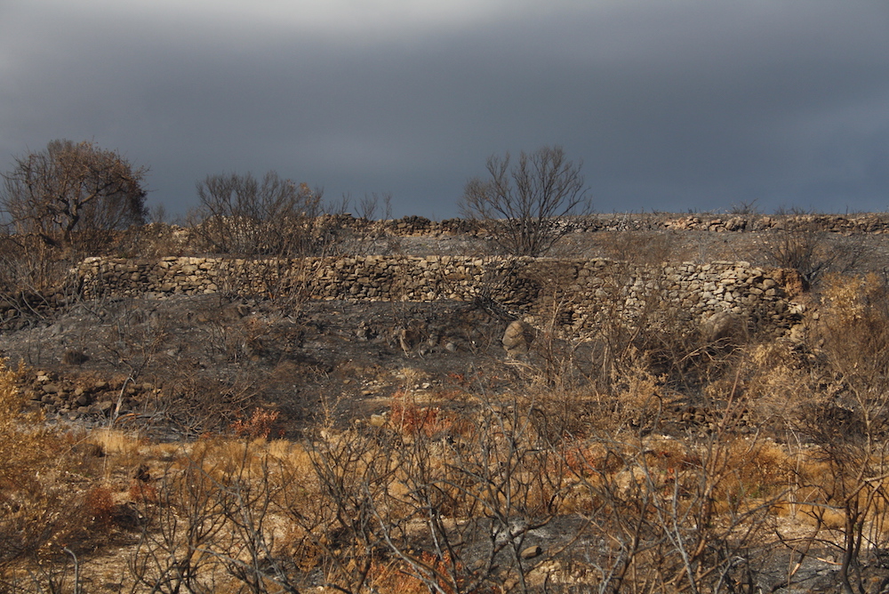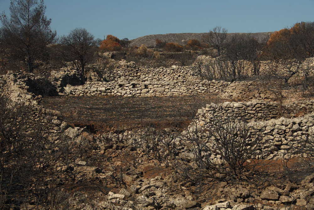 Μία σειρά 4 φωτογραφιών από τη μεγάλη φωτιά του 2017 με την αποκάλυψη σειράς καλοδιατηρημένων ξερολιθιών έξω από την Καρβουνάδα και πριν το Μυλοπόταμο