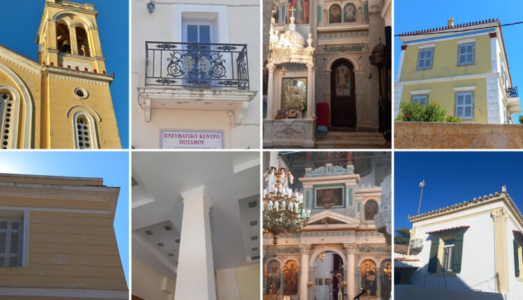 Είναι, το καλύτερο θα έλεγα, ιστορικό κτήριο-κατοικία του Ποταμού με ψηλόκορμο φοίνικα που συμπληρώνει νεοκλασική εικονογραφία. Εδώ συναντάμε παραστάδες με κιονόκρανα κορινθιακού ρυθμού, επιστήλιο, μετώπη ή ζωοφόρο σε μπλε απόχρωση, γείσο, γεισίποδες και ακροκέραμα. Τα παντζούρια είναι γερμανικού ρυθμού(στο ίδιο επίπεδο με τον τοίχο), ενώ στο κοινοτικό μέγαρο Ποταμού είναι γαλλικού ρυθμού. Επίσης ιδιαίτερης αισθητικής και πολιτισμικής αξίας είναι η ύπαρξη εξώστη-μπαλκονιού με γρύπες και μαίανδρο(τρέχων), δηλαδή, ταινιωτή διακόσμηση(σύνθεση ευθειών) που ενώνονται μεταξύ τους με ορθές γωνίες. Το μοτίβο χρησιμοποιήθηκε συχνά στην αρχαιότητα για τη διακόσμηση της ζωοφόρου. Μια και μιλάμε για μπαλκόνι να αναφέρω ότι τον εξώστη-μπαλκόνι του Πνευματικού κέντρου Ποταμού στολίζουν τα Χερουβείμ(αγγελικά πλάσματα στην υπηρεσία του θεού) και άμπελοι.