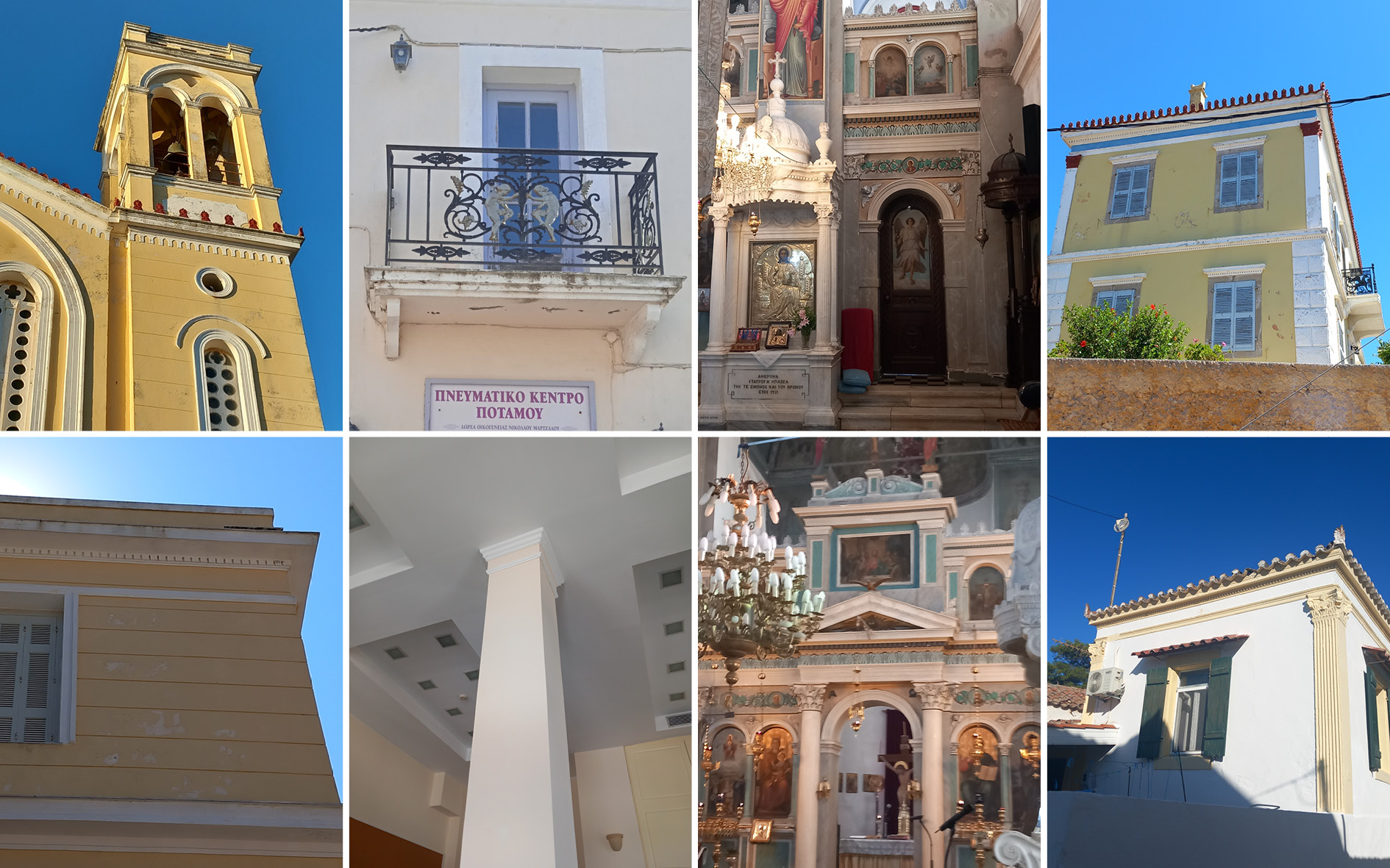 Στα εικονοστάσια βλέπουμε τα περισσότερα από τα παραπάνω, με τη διαφορά ότι οι κίονες είναι ιωνικού ρυθμού.
