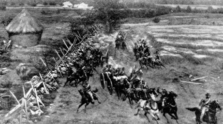 Οι άντρες του βαδίζουν ολοταχώς προς τον θάνατο. Οι Γιάνκηδες τους χτυπούν με ό,τι έχουν και δεν έχουν, και έχουν πολλά είναι η αλήθεια, και το ιππικό τούς σφυροκοπά από τα πλαϊνά. Μόλις οι μισοί άντρες της Συνομοσπονδίας επιβιώνουν από την κακοσχεδιασμένη και βεβιασμένη επίθεση.