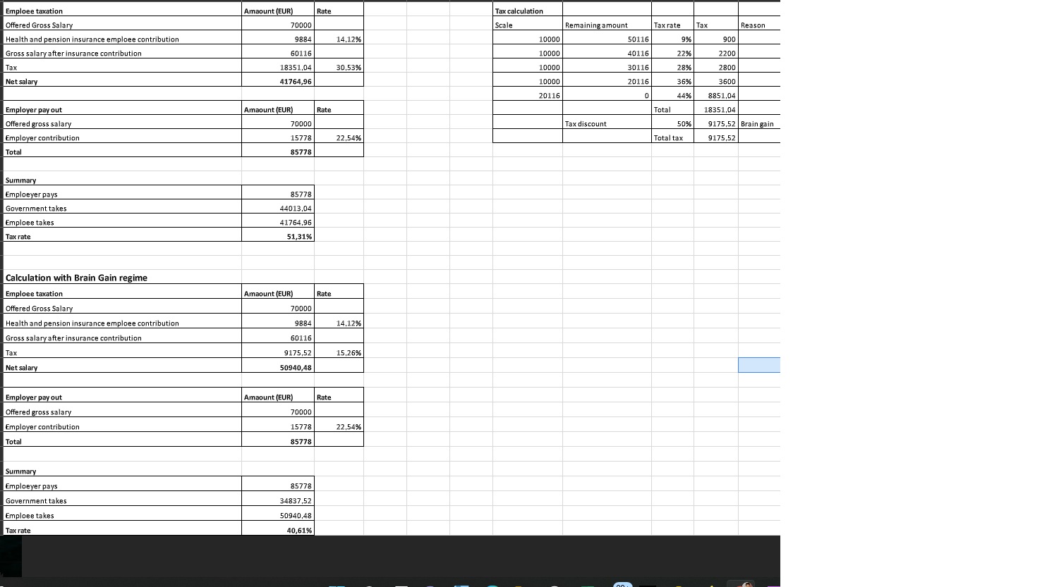 Χρησιμοποιώντας το καθεστώς Brain Gain που διαφημίζει ο πρωθυπουργός θα πάρω καθαρά 50.940 ευρώ ή με άλλα λόγια θα πρέπει να πληρώσω 40,61% φόρους και τέλη.