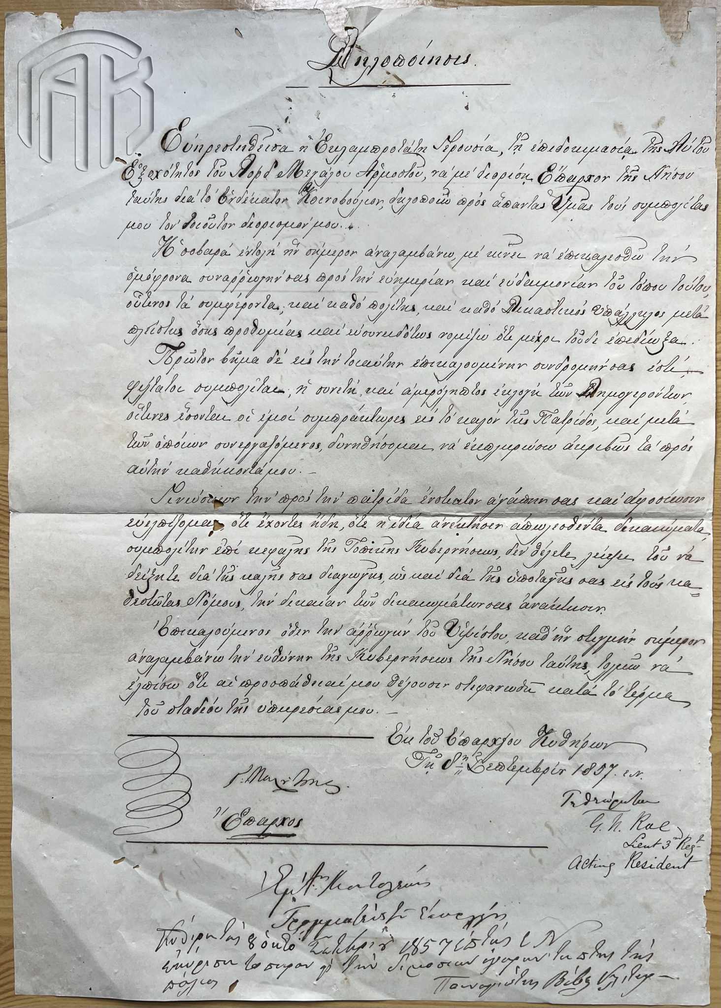 * Γ.Α.Κ , Τμήμα Κυθήρων . Αρχ/σιο . Επαρχείο 1853-1857.